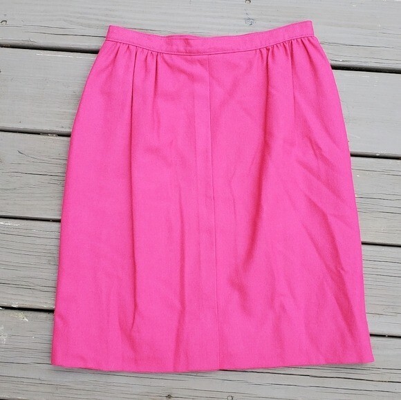 как выглядит Vintage 80s Barbie Hot Pink Virgin Wool Preppy Acadamia Work Midi Pencil Skirt S фото