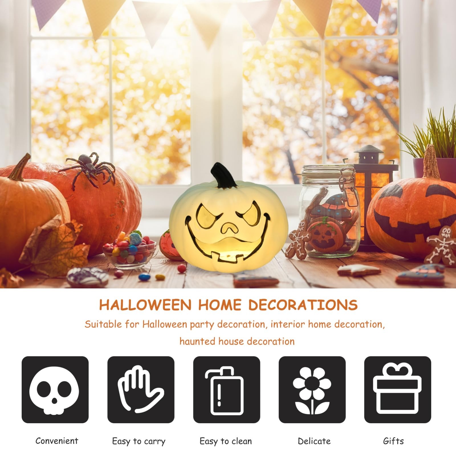 Hollow Pumpkin Lantern Halloween Party Decoration Battery Operated Pumpkin La...