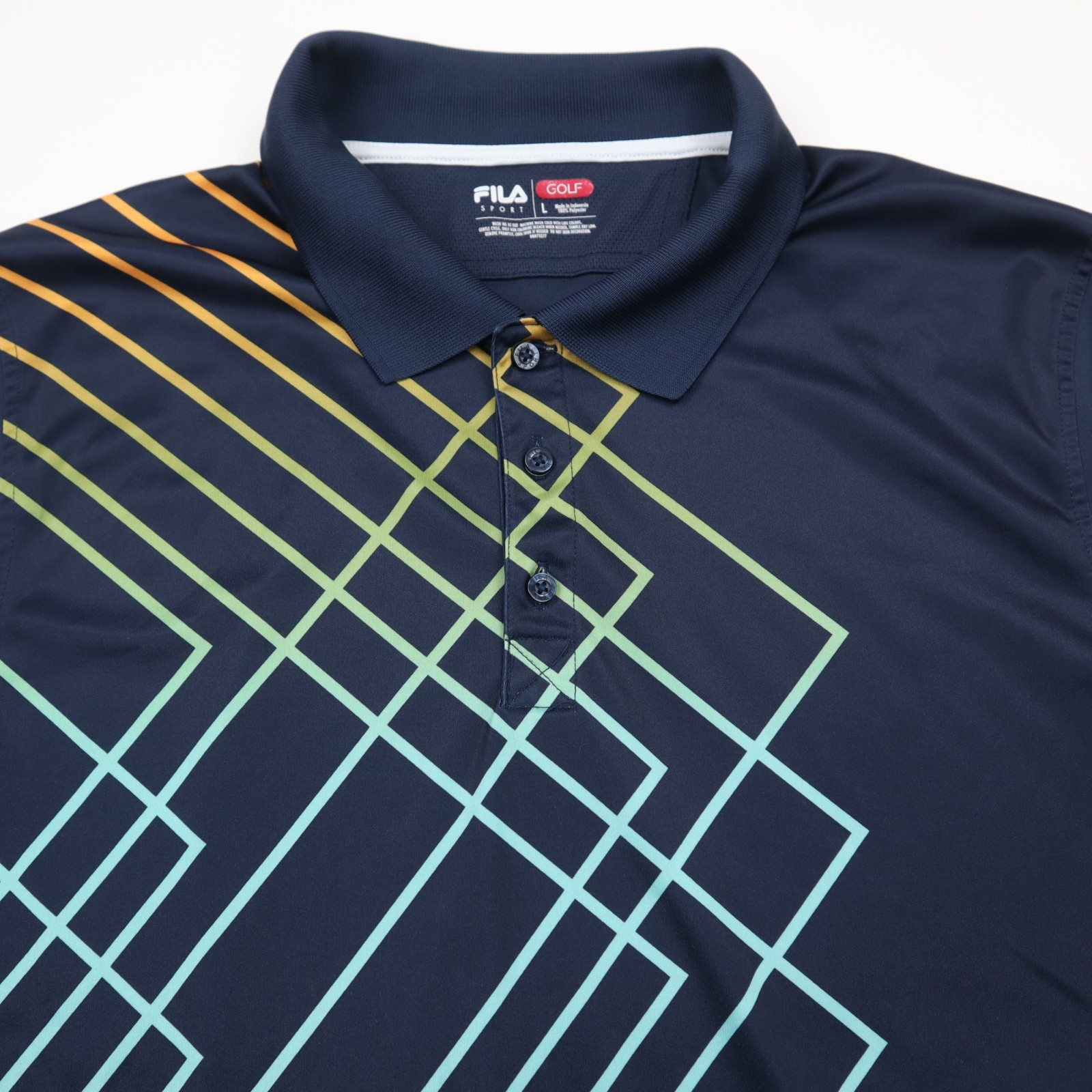 как выглядит Fila Sport Golf Polo Shirt Mens Large Dark Blue Geometric Quick Dry Performance фото