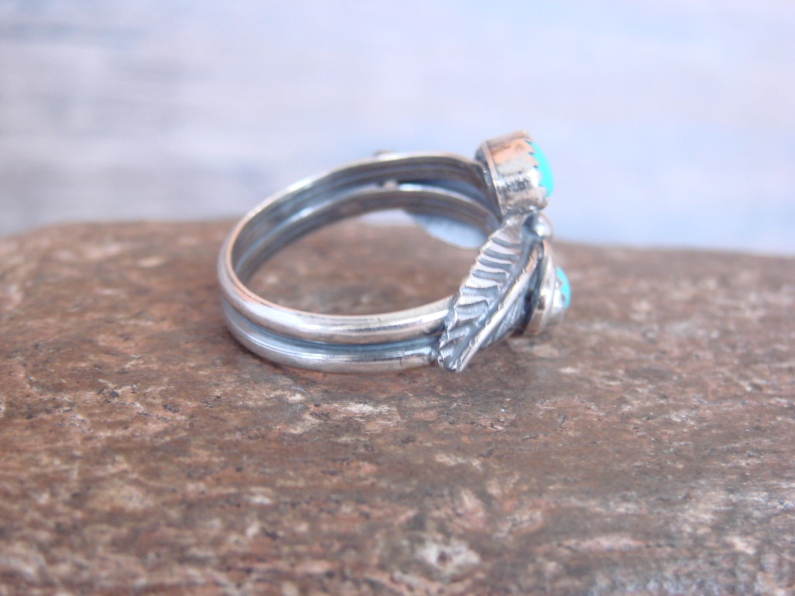 Native American Sterling Silver Turquoise Feather Ring - Yazzie - Size 7