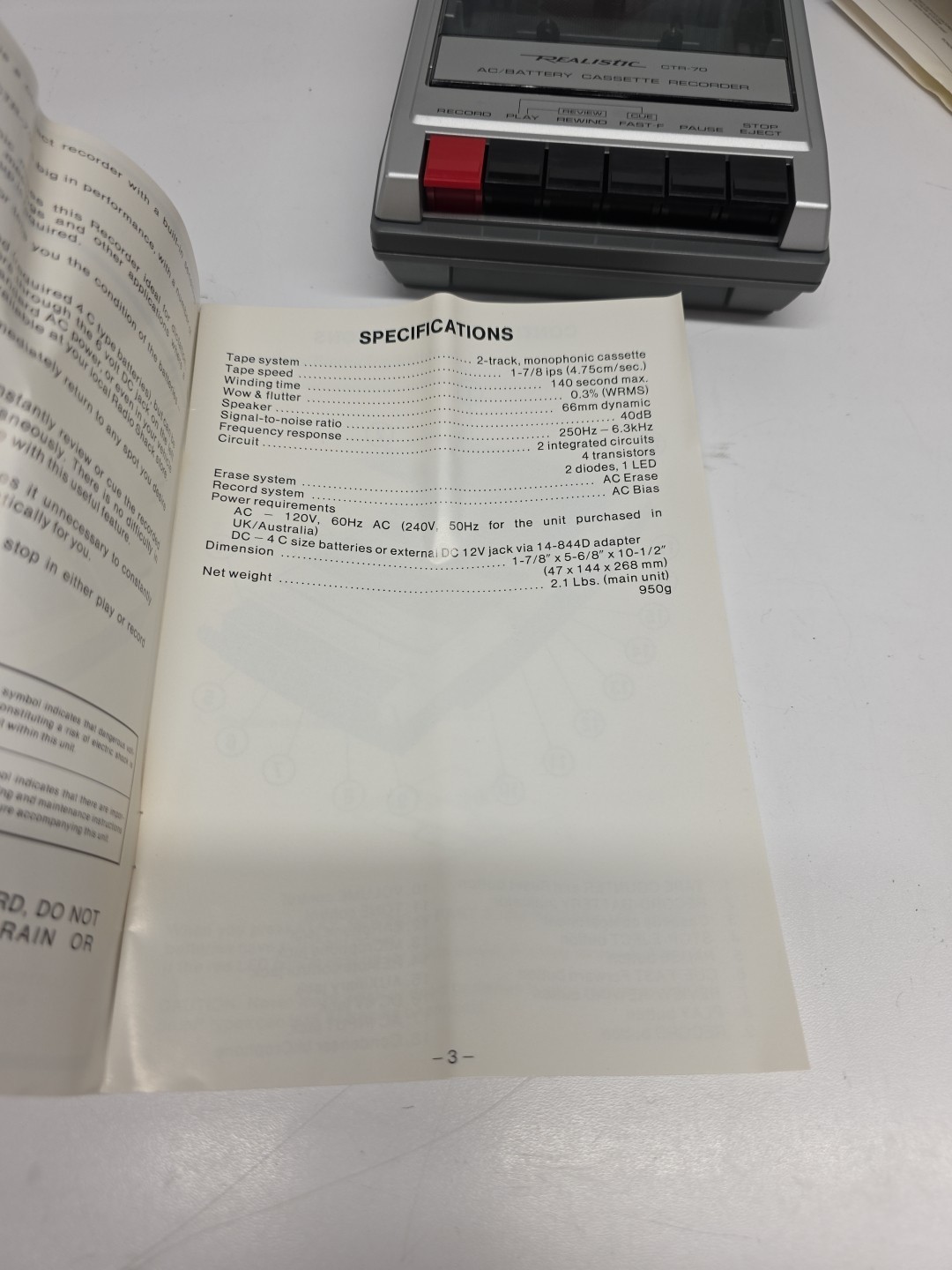 Open Box VTG Realistic Portable Cassette PLAYER RECORDER CTR70 14-1050 AC/DC