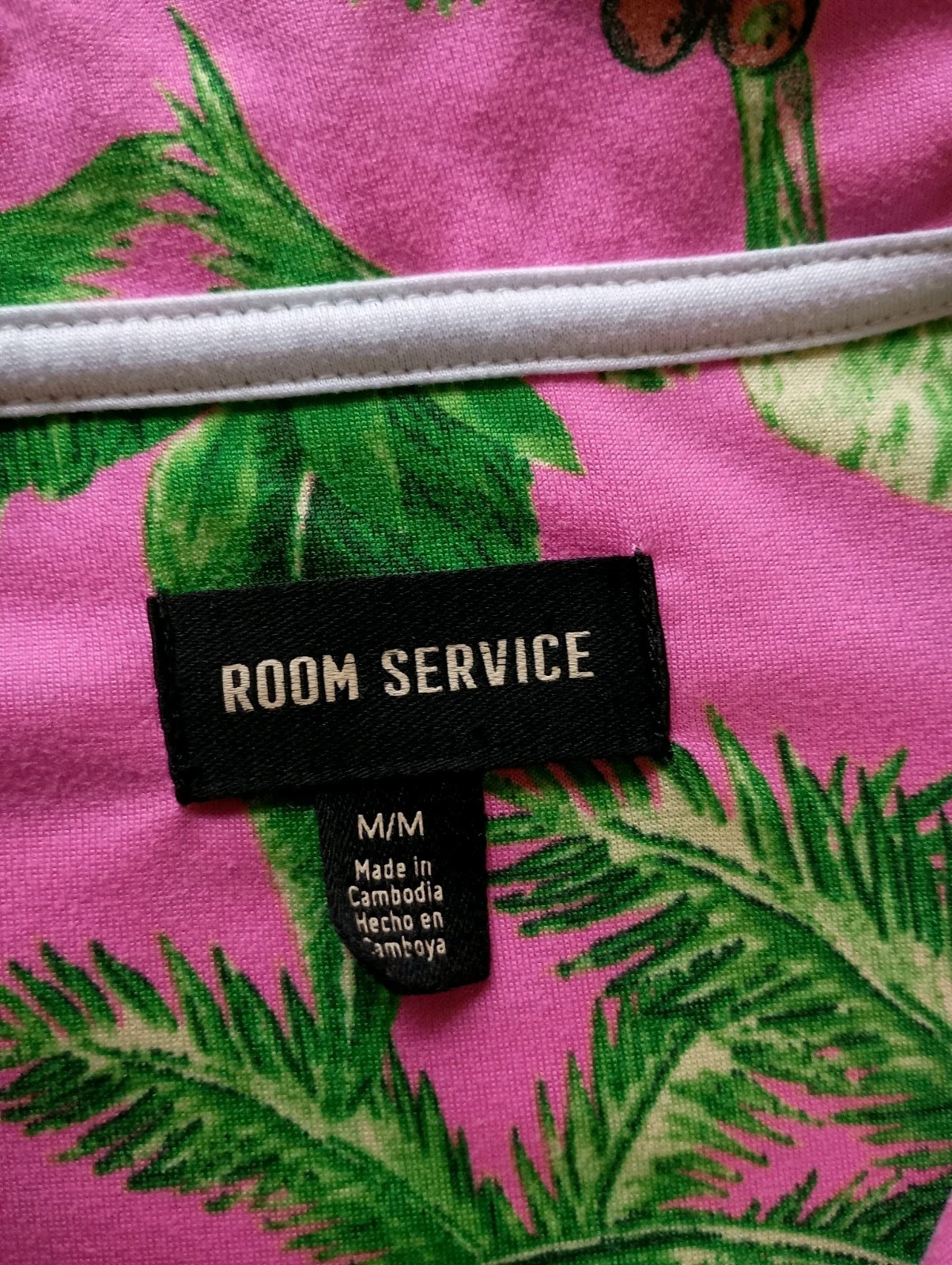 Room Service Sz Medium Pink Women's 2 Piece Capri Tropical Palm Beach Pajama Set