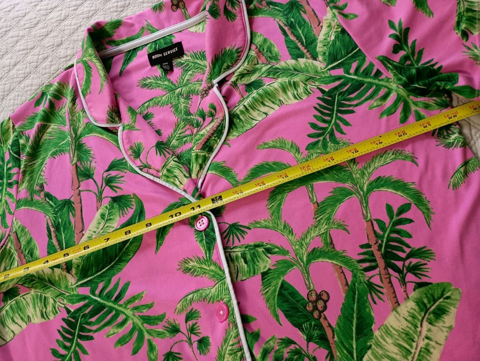 как выглядит Room Service Sz Medium Pink Womens 2 Piece Capri Tropical Palm Beach Pajama Set фото