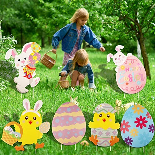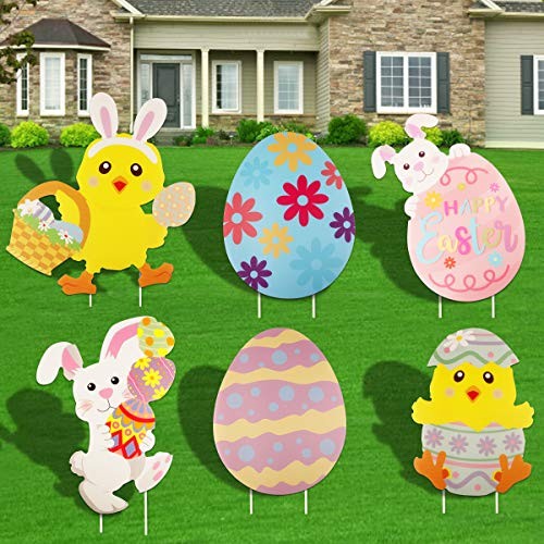 Included Components: 6 Easter decoration signs, 12 stakes