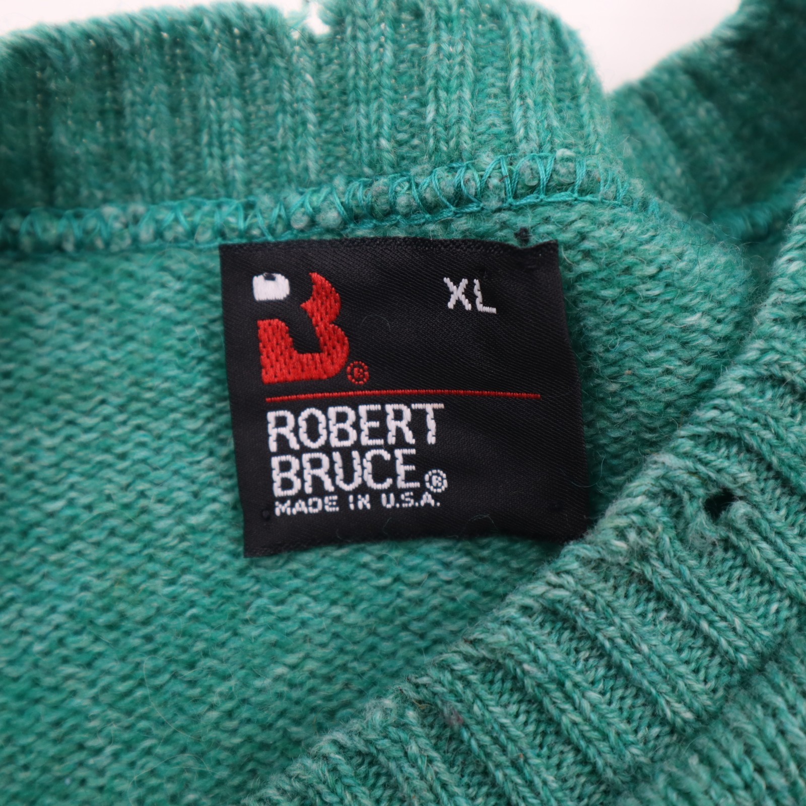Vintage 90s Robert Bruce Wool Sweater Mens actual size Large Green Distressed