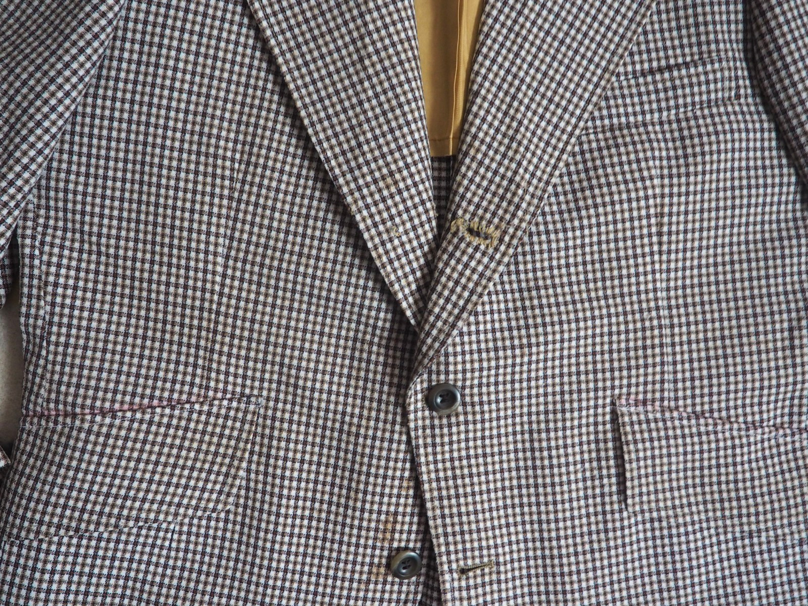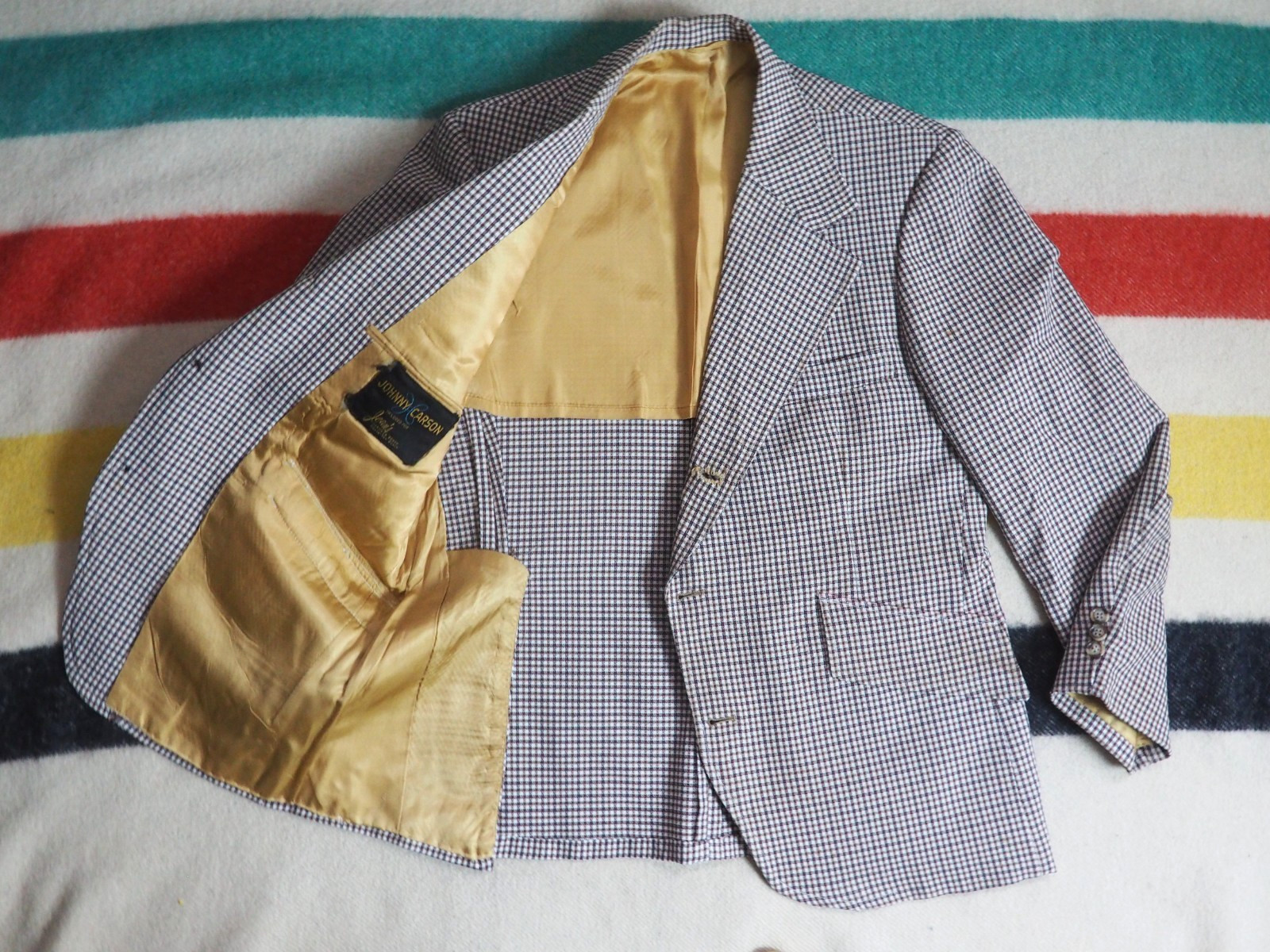 как выглядит VTG 60s 70s Johnny Carson White Brown Gingham Plaid 3 Button Blazer Jacket 42 фото
