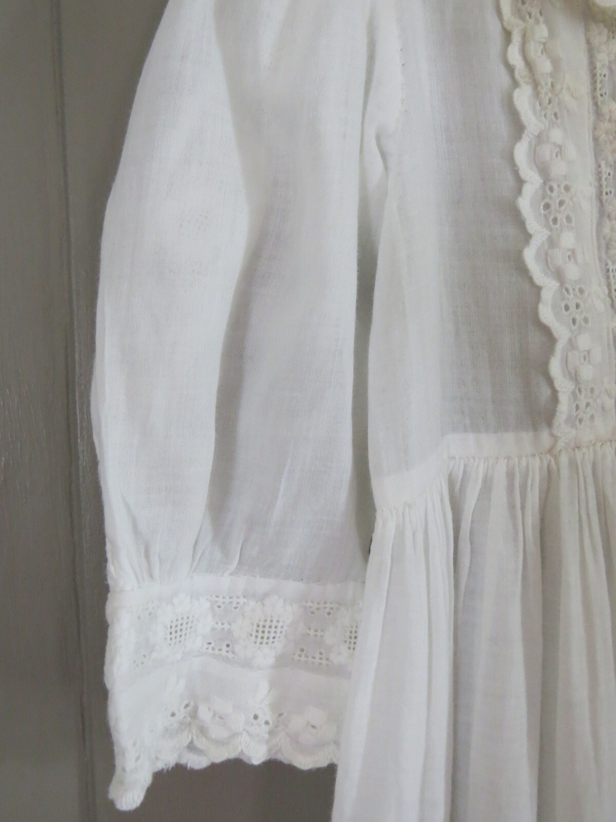 как выглядит Antique Victorian Cotton Baby Christening Dress Hand Sewn Lace, Tucking c.1900 фото