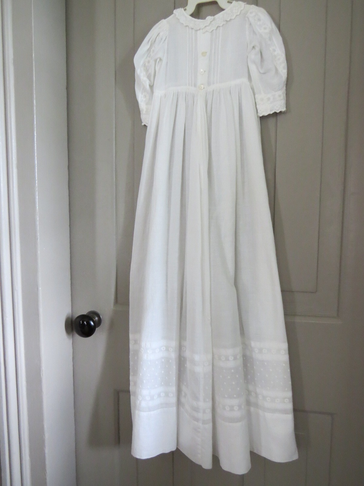 Antique Victorian Cotton Baby Christening Dress Hand Sewn Lace, Tucking c.1900