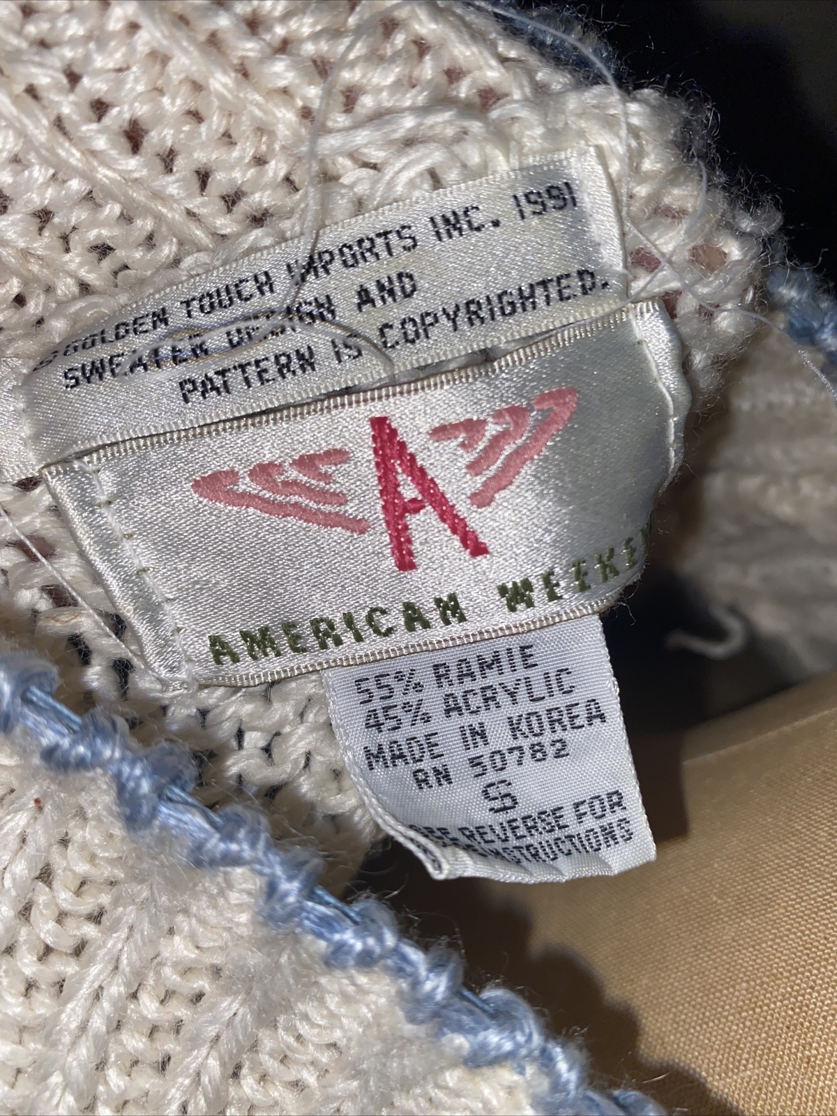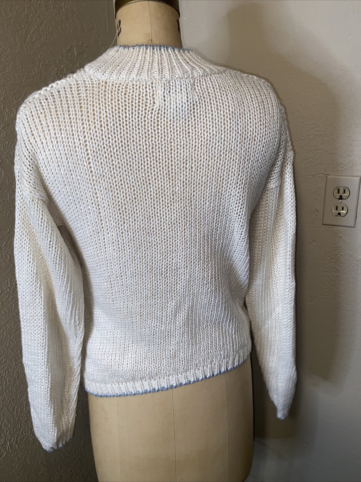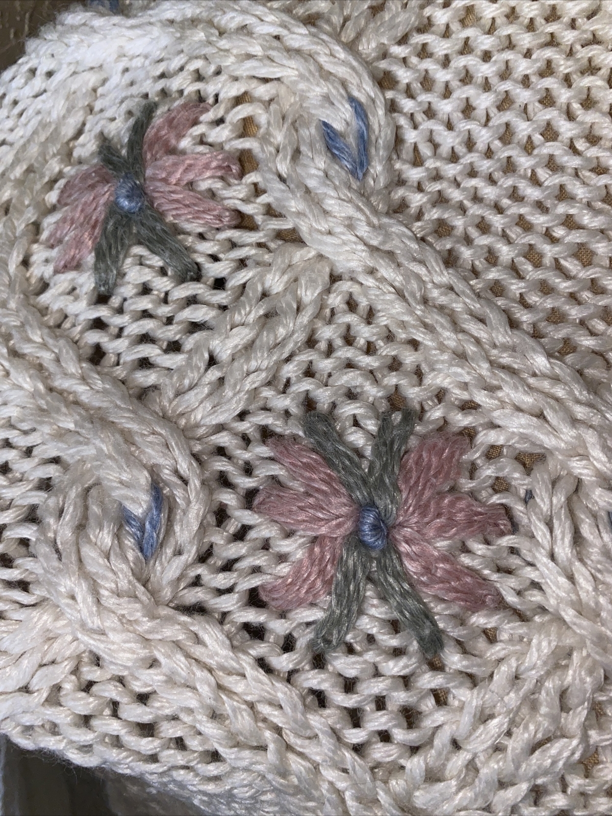 Vintage American Weekend Chucky Knit Cream Sweater With Floral Embellishments SM