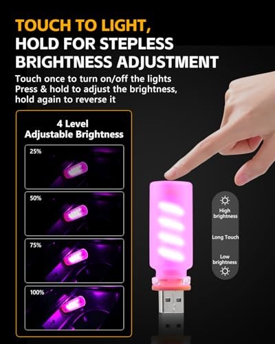 2PCS USB Lights for Car, Touch Adjustment Lights, Frosted Glass Purple Spiral