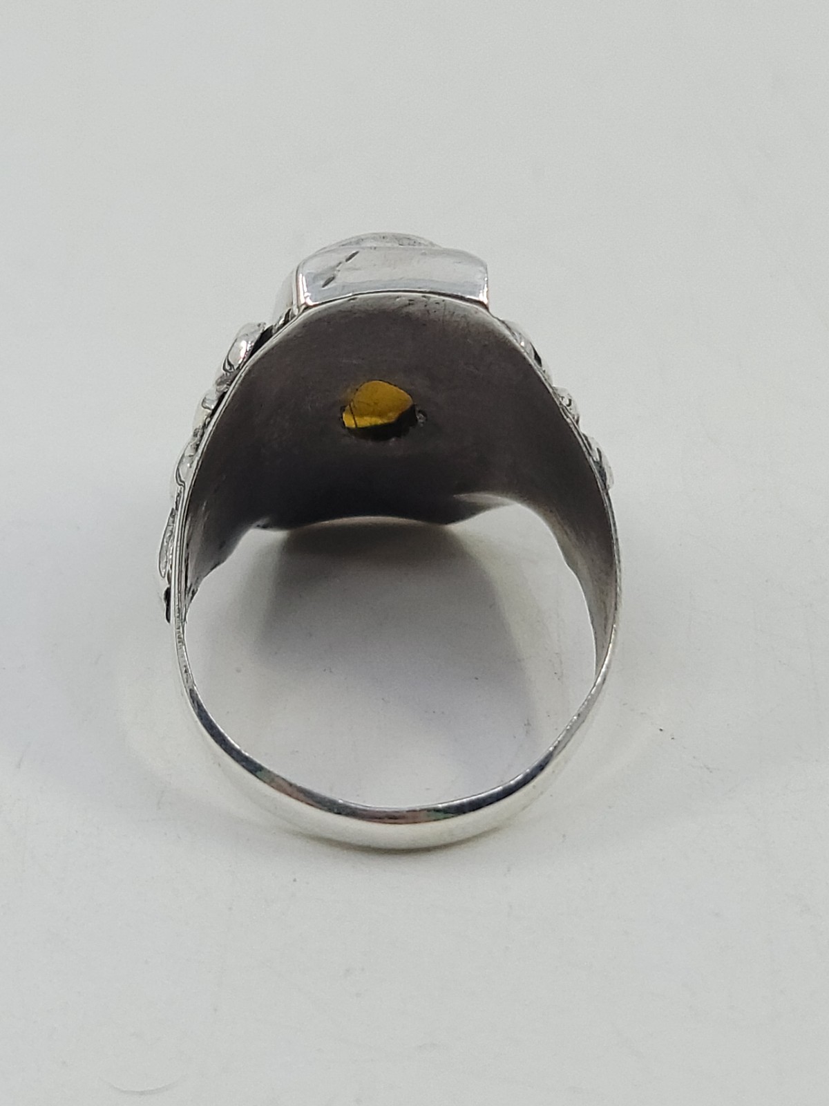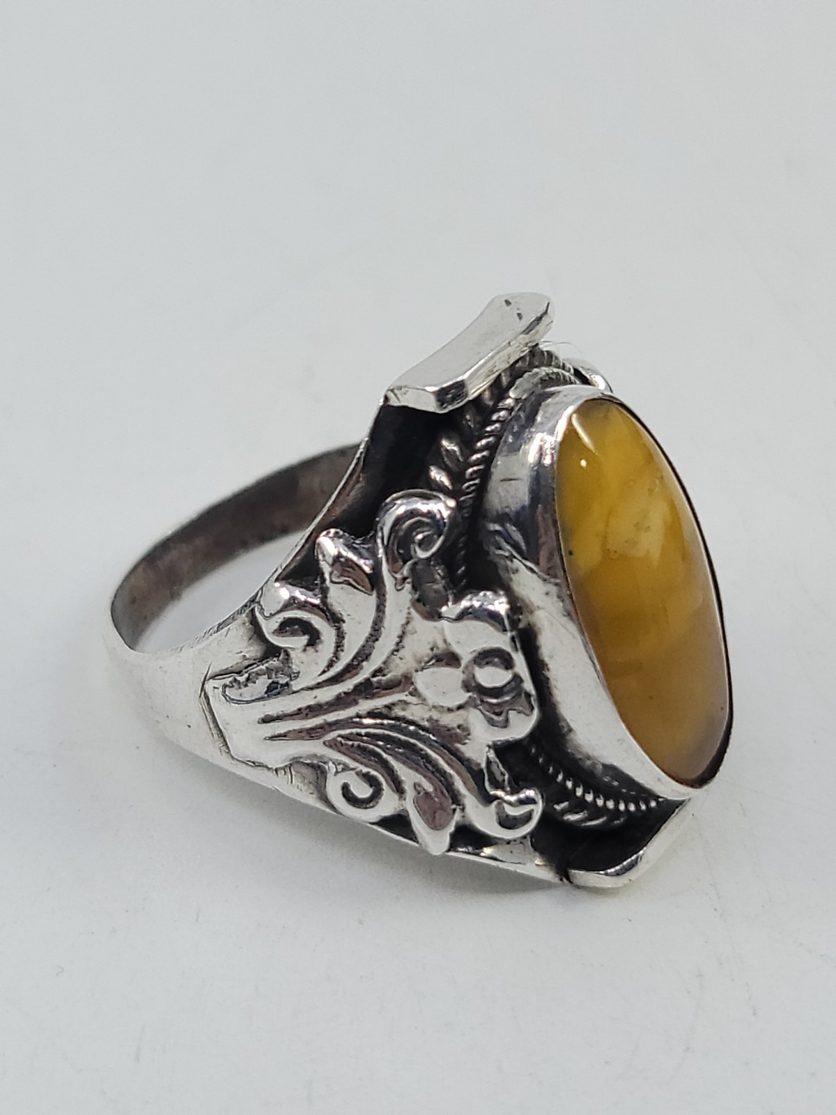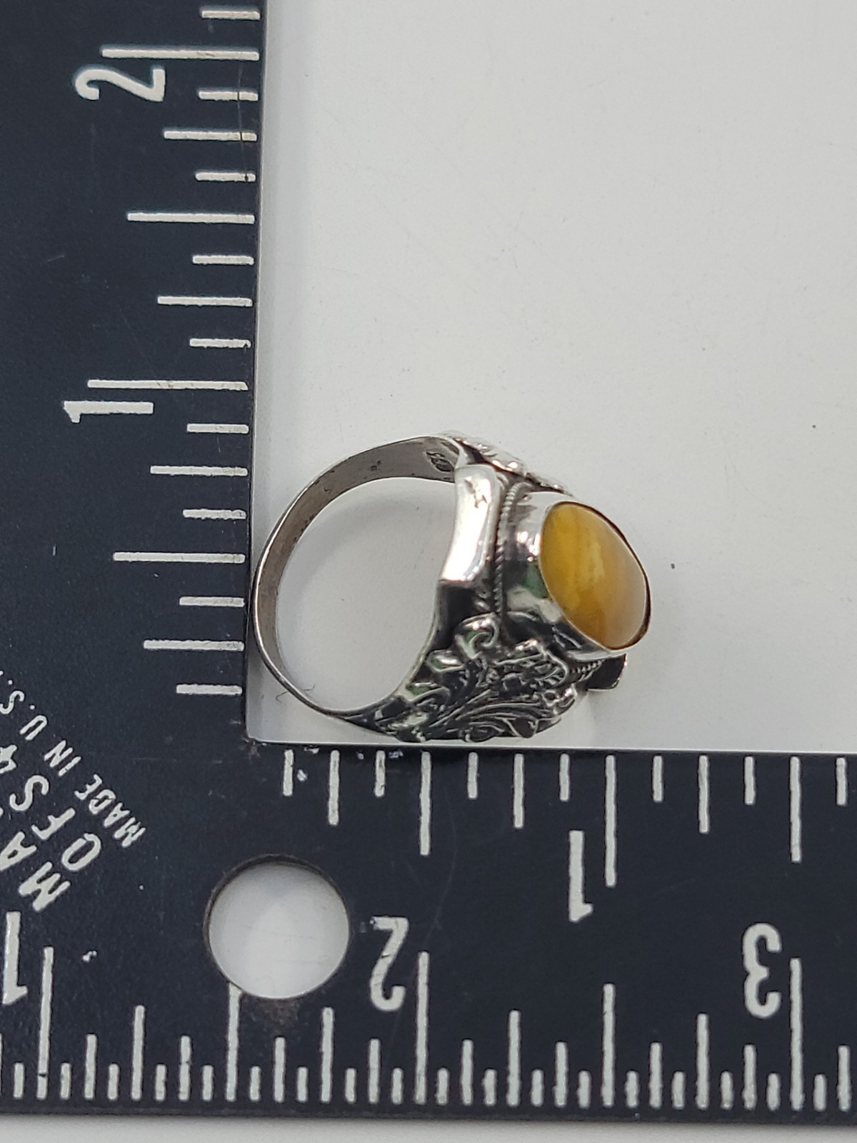 как выглядит Vintage Sterling Silver Egg Yolk Butterscotch Amber Ring Size 9 Estate фото