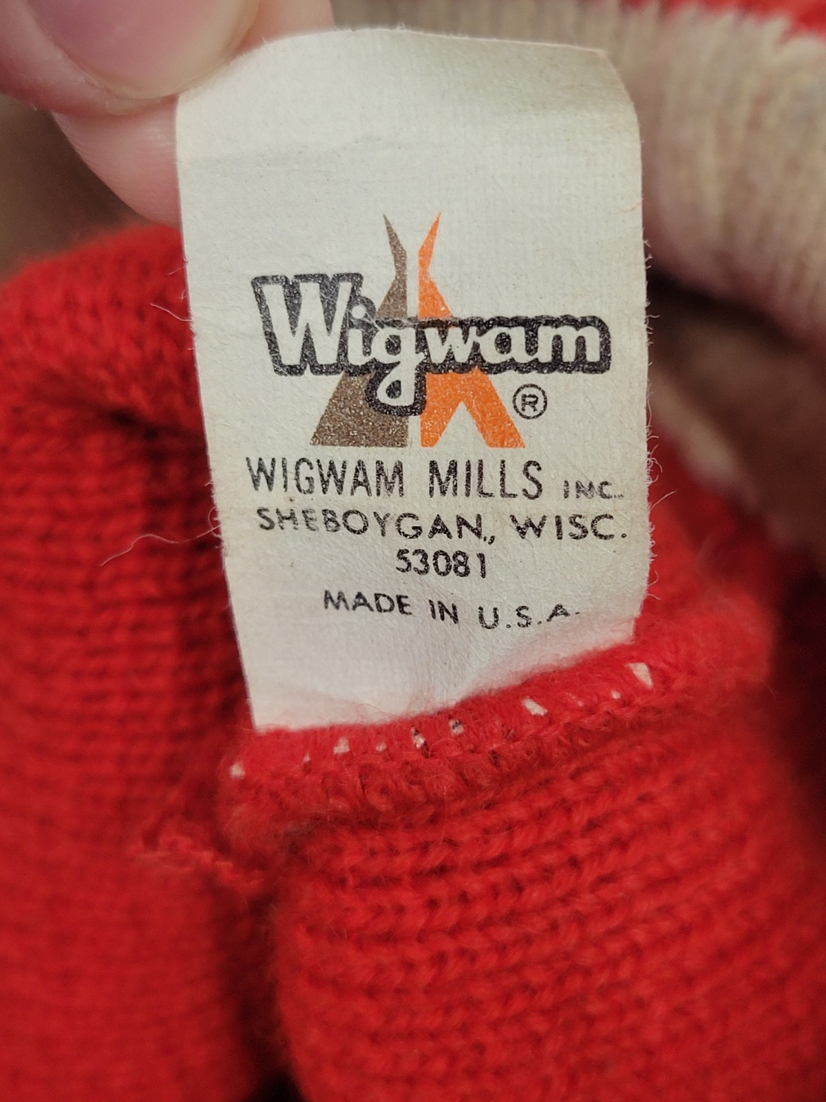 Vintage Wigwam Mills Red Knit Winter Hat Pompom Beanie Made in USA
