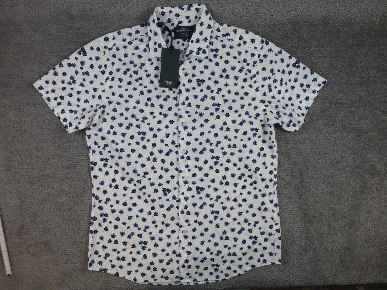 как выглядит Rodd Gunn Button Up Shirt Mens L White Blue Sports Fit Floral AOP Hills NWT фото