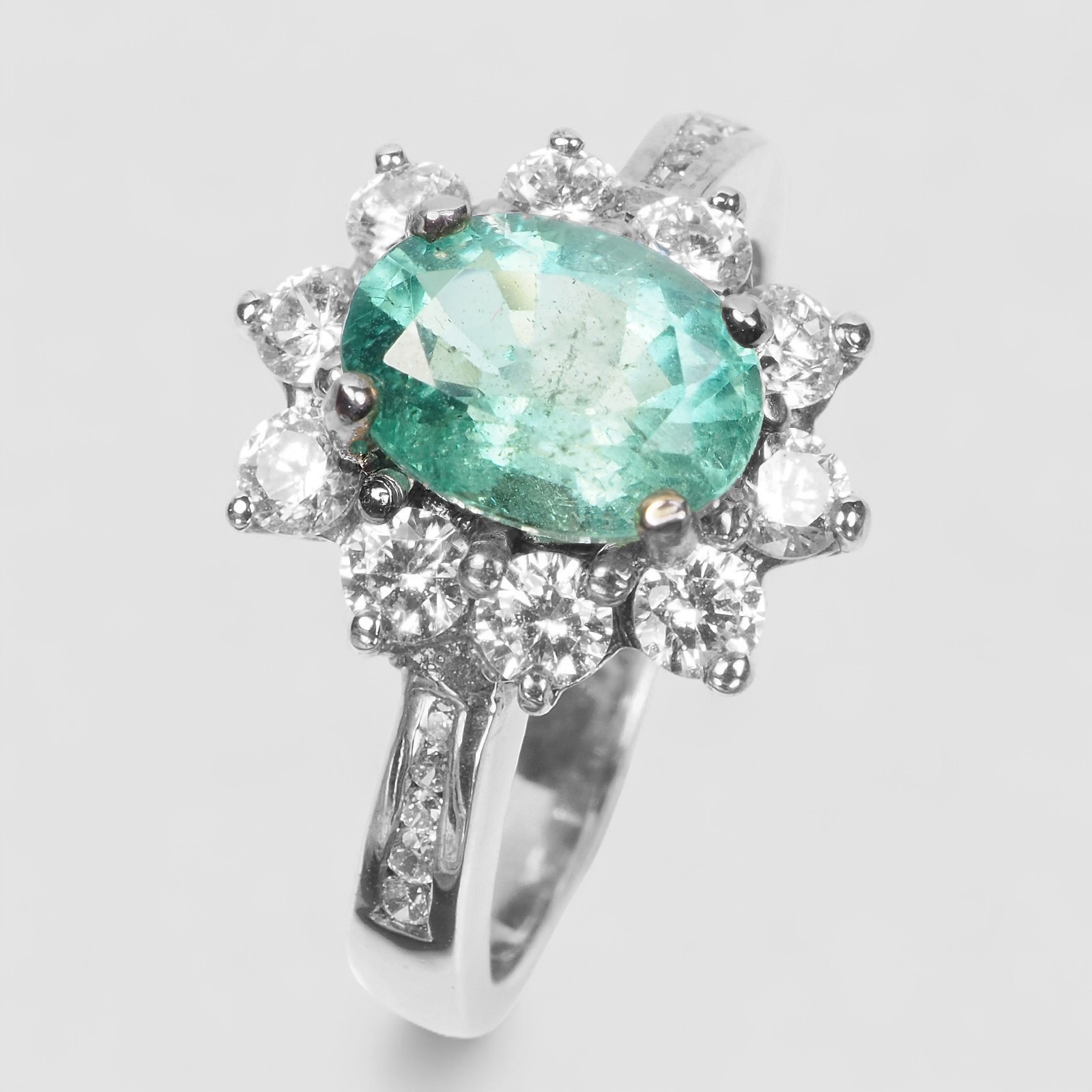 как выглядит Striking Colombian Green Emerald 1.35Ct 925 Sterling Silver Halo Rings Size 6.5 фото