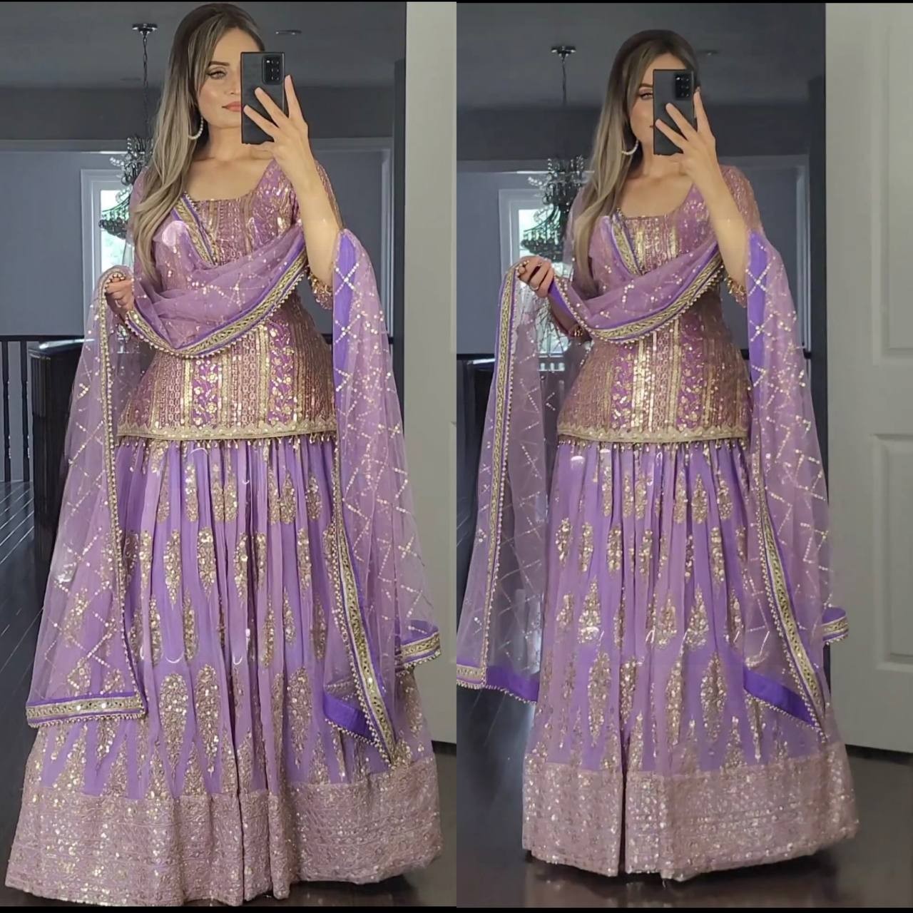 Lehenga Work: Sequence 5mm Work, Multi Needle Work, Embroidery Work, Zari Work