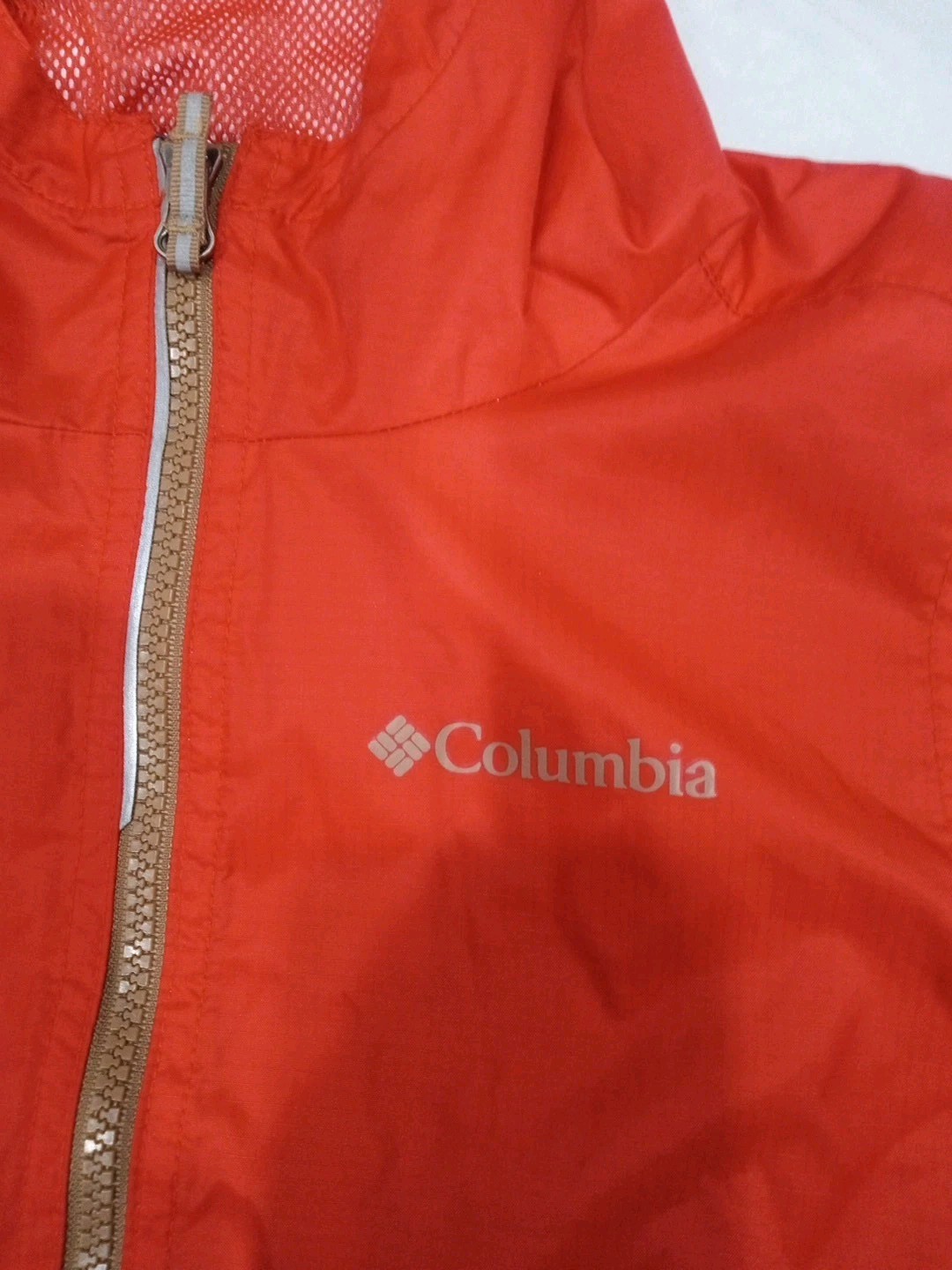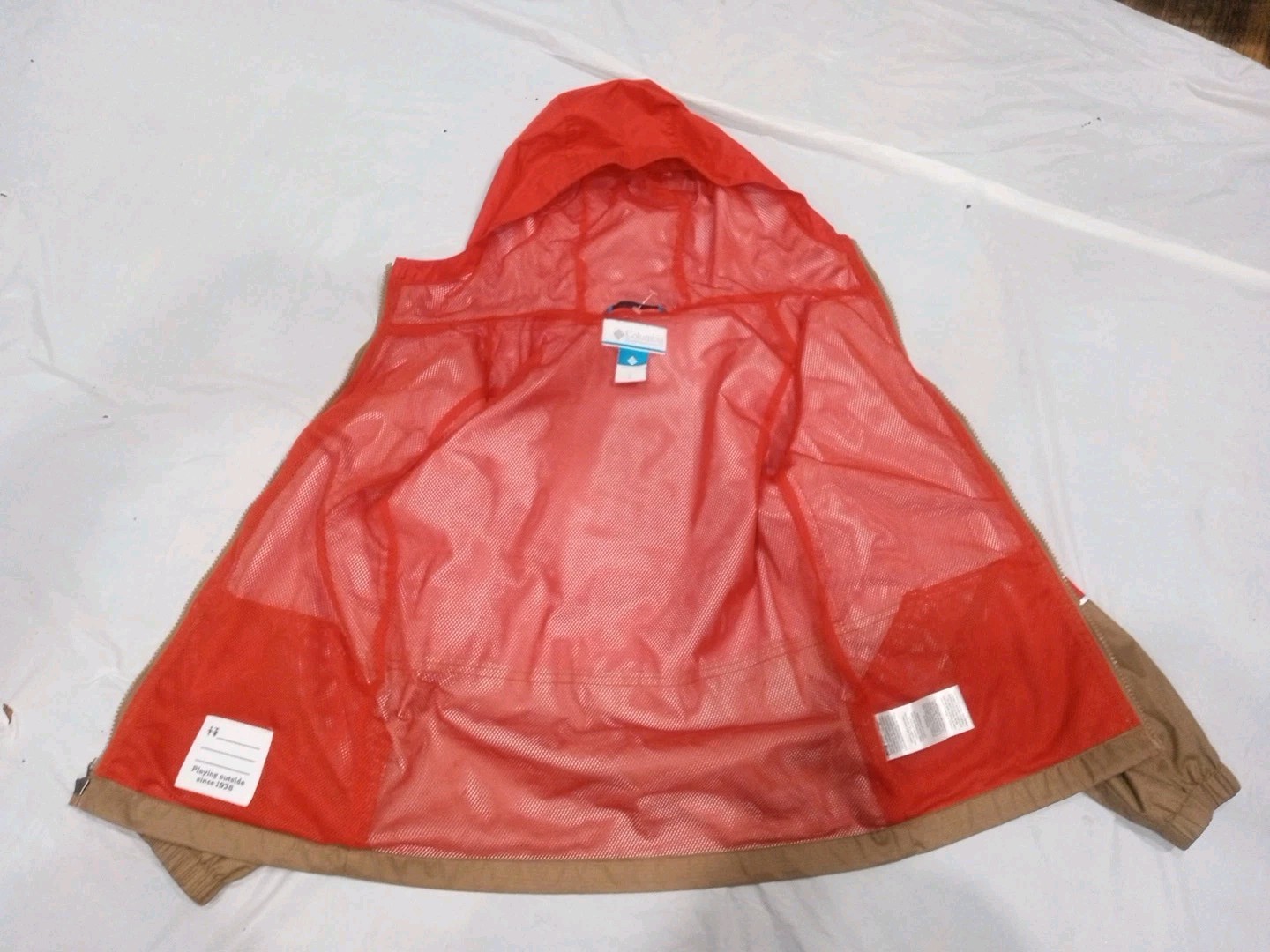 как выглядит Columbia youth unisex red and tan hooded wind breaker/rain jacket EUC Outdoors фото
