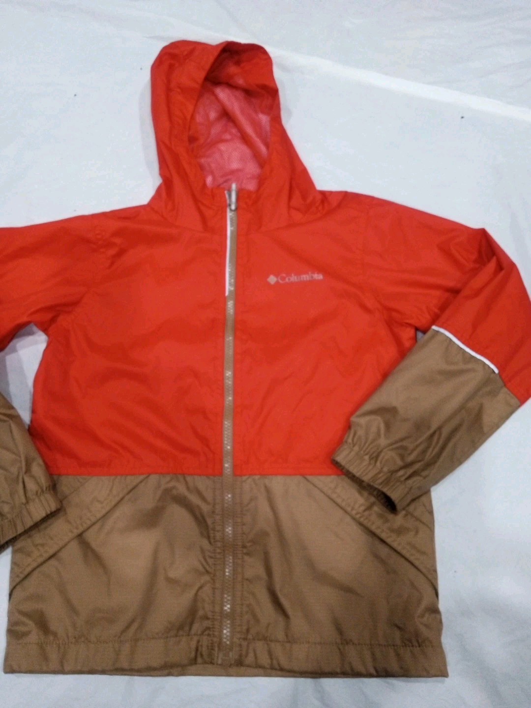Columbia youth unisex red and tan hooded wind breaker/rain jacket EUC Outdoors