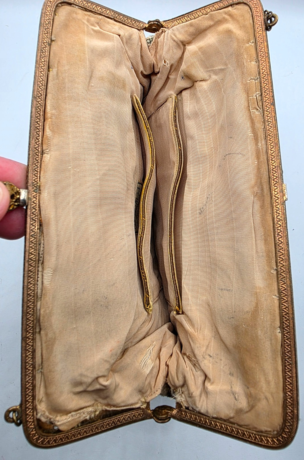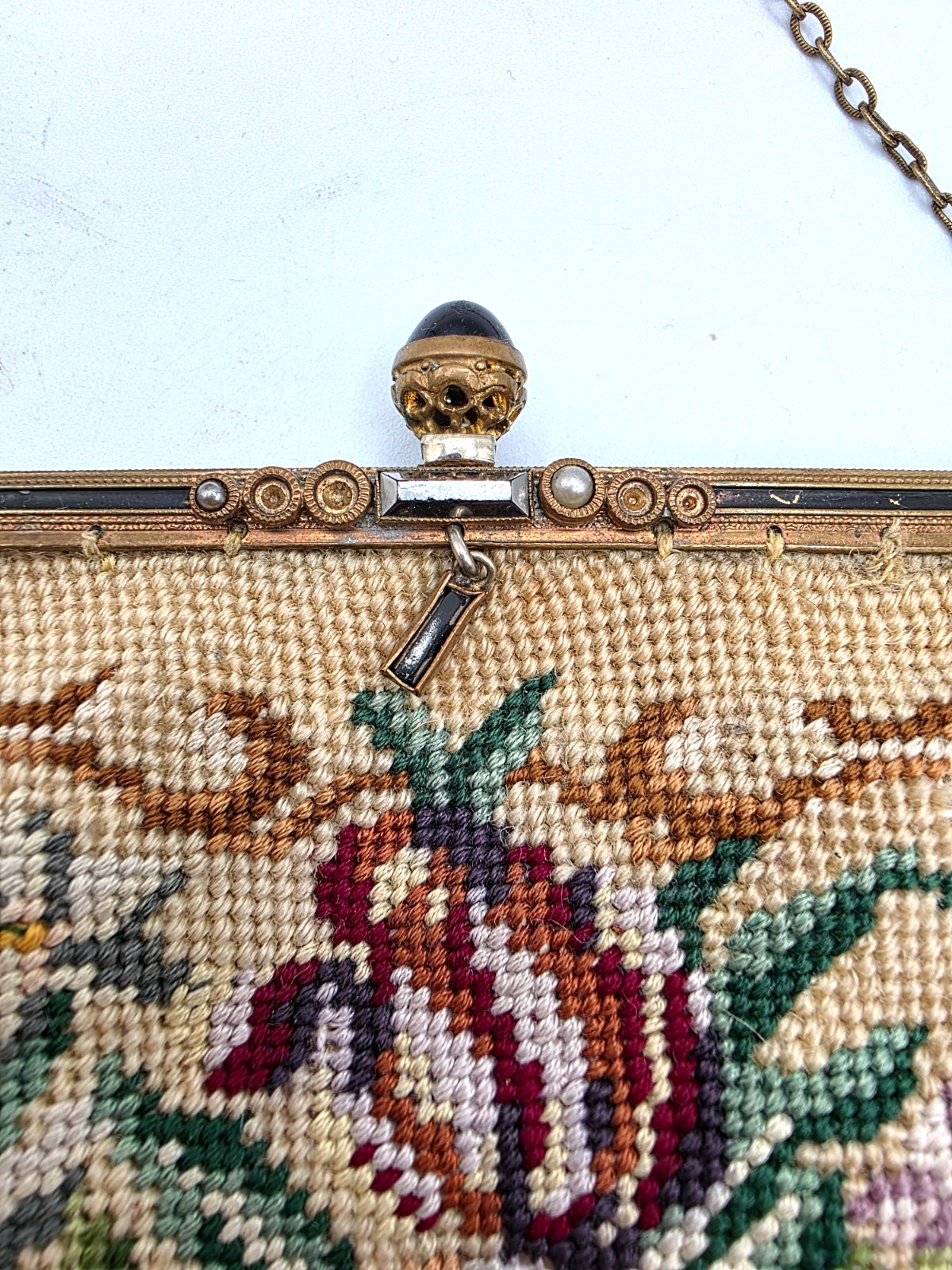 Vintage D. Balazs San Francisco Petit Point Purse Floral Brass Frame Chain Rare