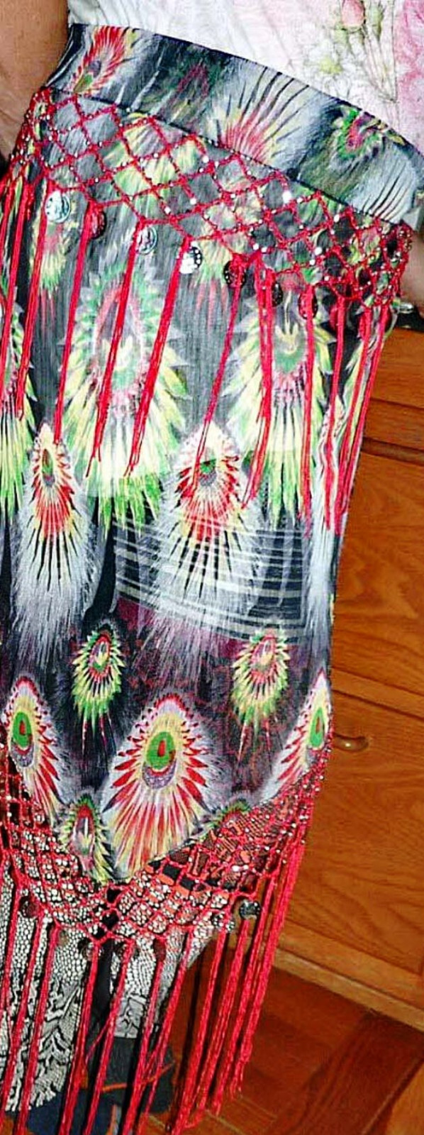 как выглядит Dance belly, gypsy shawl peacock,event, show, stage, coins, see-through, costume фото