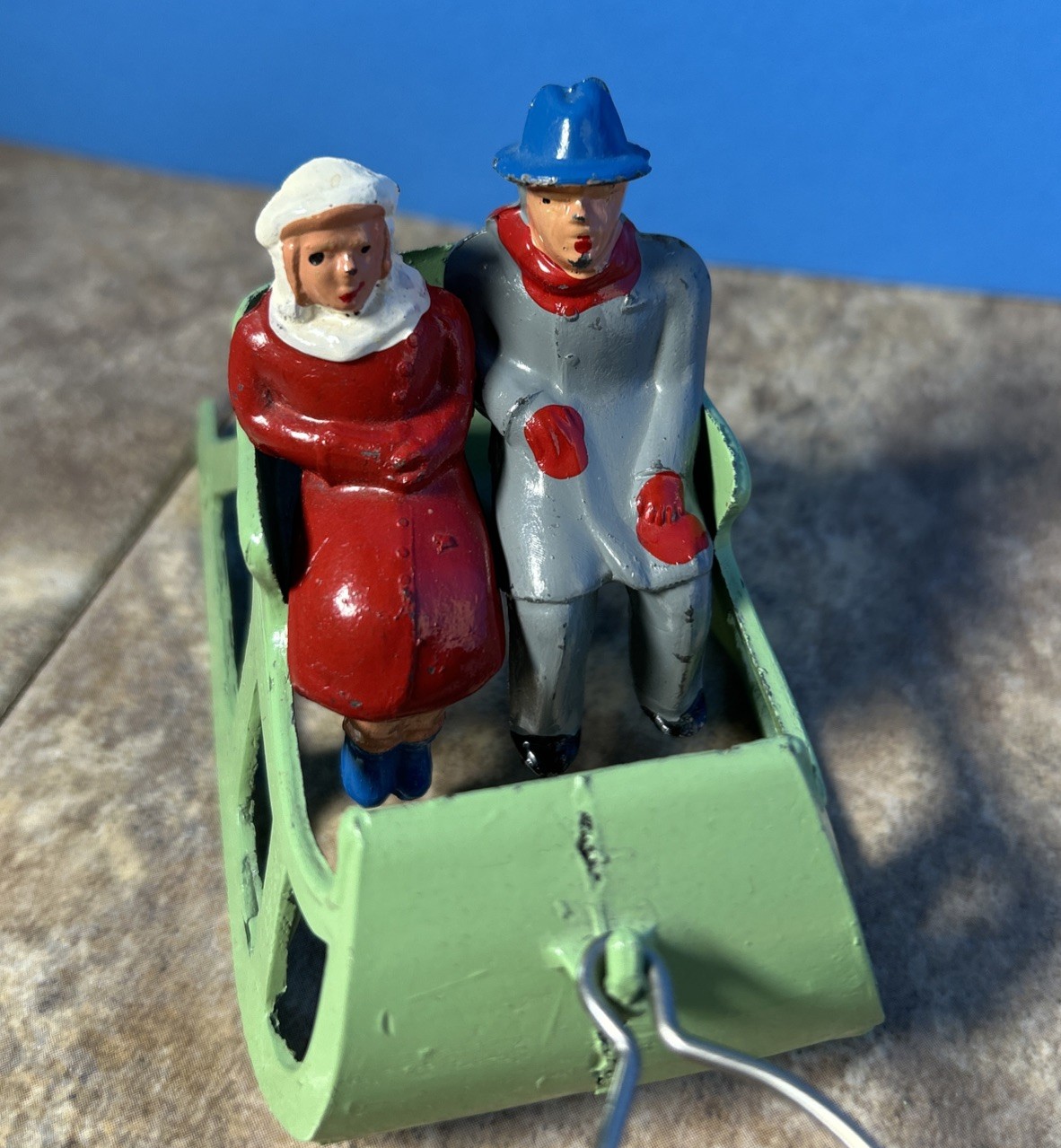 1940's Barclay Winter Wonderland 510 Lead One Horse Open Sleigh with 2 Riders