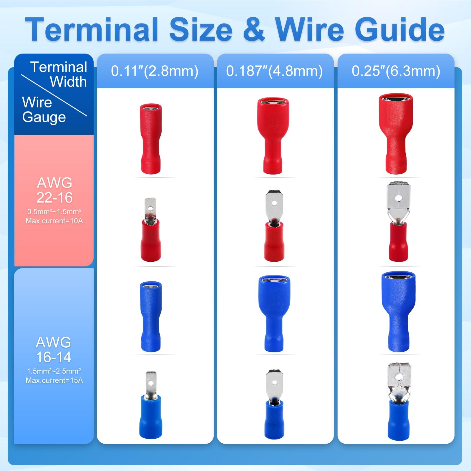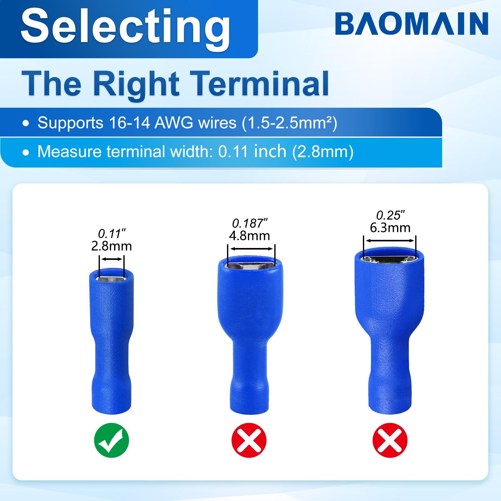 Included Components: 100 X Blue Female Crimp Terminal