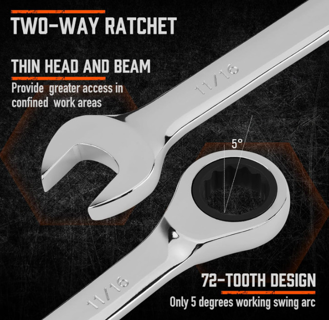 26-Piece Ratcheting Wrench Set, Metric and SAE, Ratchet Combination Wrenches Set