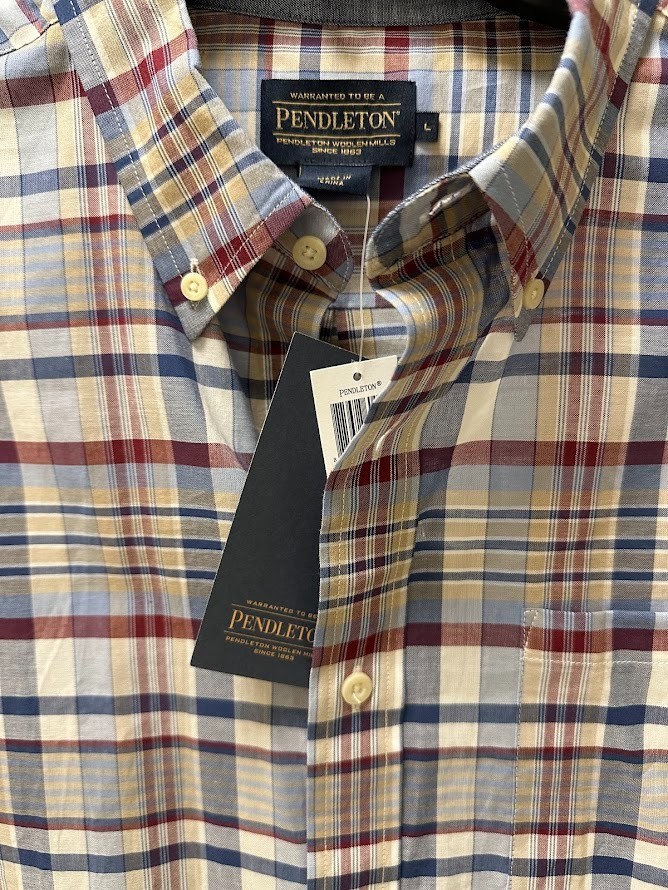 64.50 NWT PENDLETON Button-Down Shirt Seaside Plaid 100 Cotton - Size Large