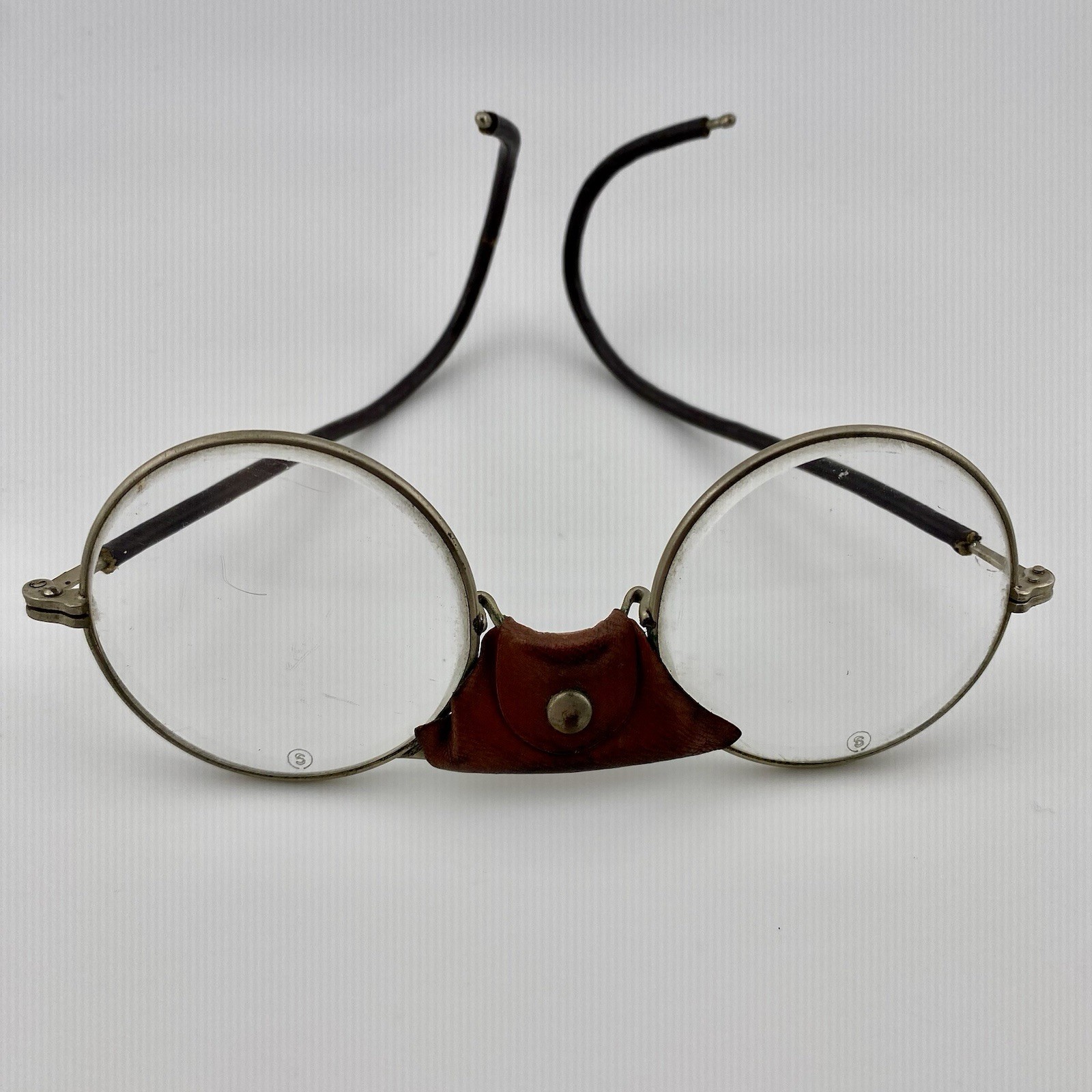 Antique Steampunk Safety Glasses w/ Leather Bridge Curl Temples c.1915 30s