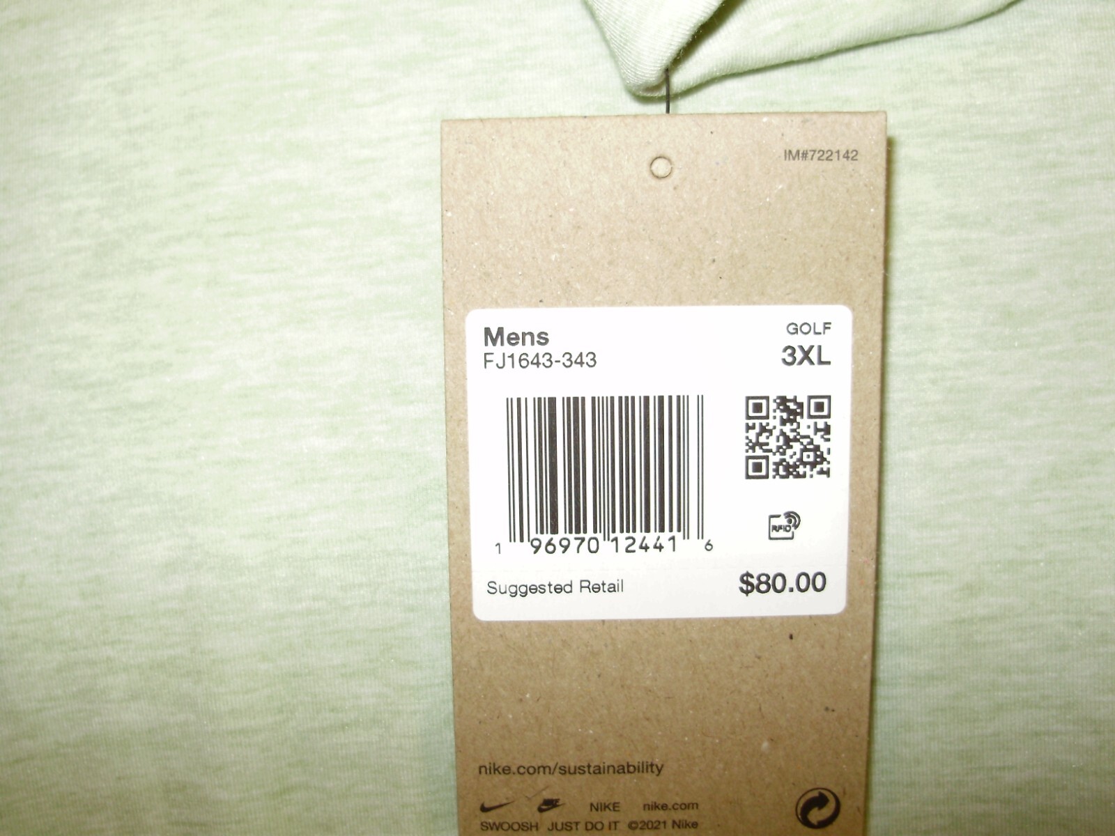 Nike Dri-Fit Tour Heathered FJ1643-343 Light Green Polo Golf Shirt Men's 3XL