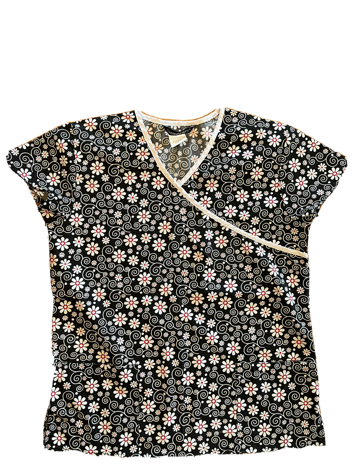 Scrubs Top Samantha Mara V-Neck 2 Pocket Black Floral Womens Uniform Small