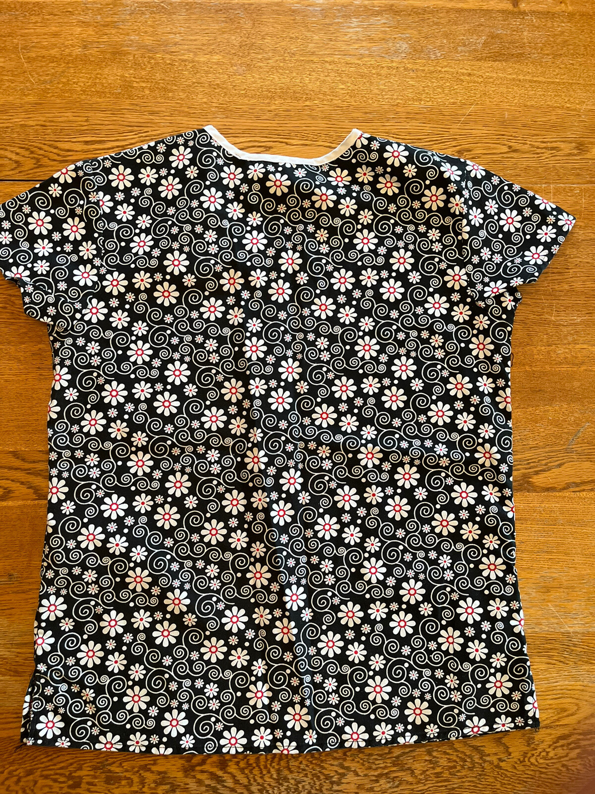 как выглядит Scrubs Top Samantha Mara V-Neck 2 Pocket Black Floral Womens Uniform Small фото