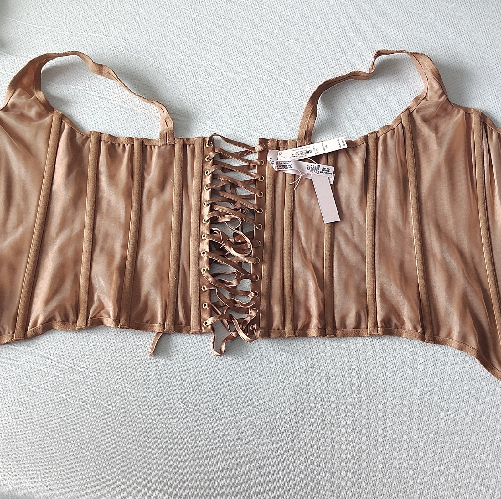 как выглядит Victorias Secret Beige Corset Top Lace-Up Sleeveless Large NWT фото