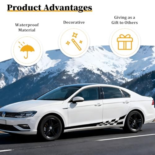 Car Body Door Side Waistline Sticker, 2PCS Sports Racing Graphic Self Black