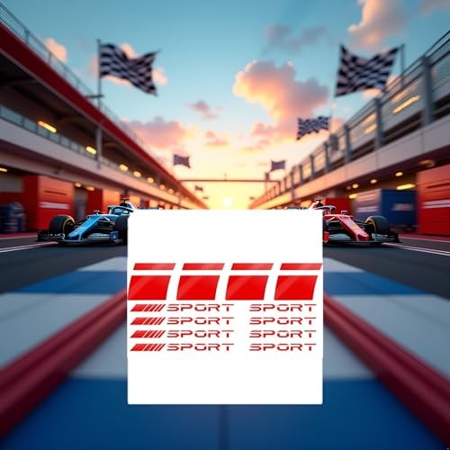 4Pcs Red Wheels Rims Sport Racing Decal Stripes Stickers Emblem Bumper Race