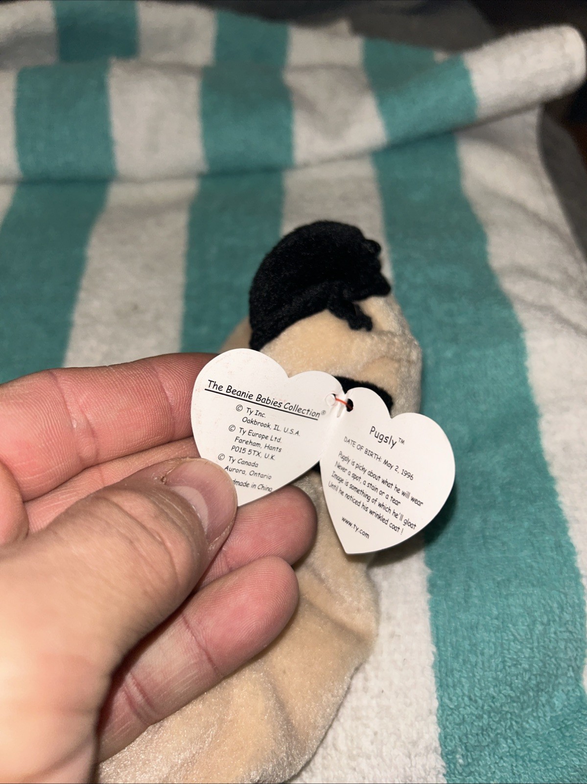 как выглядит NWT TY ORIGINAL BEANIE BABY "PUGSLY" THE PUG - NEVER PLAYED WITH фото