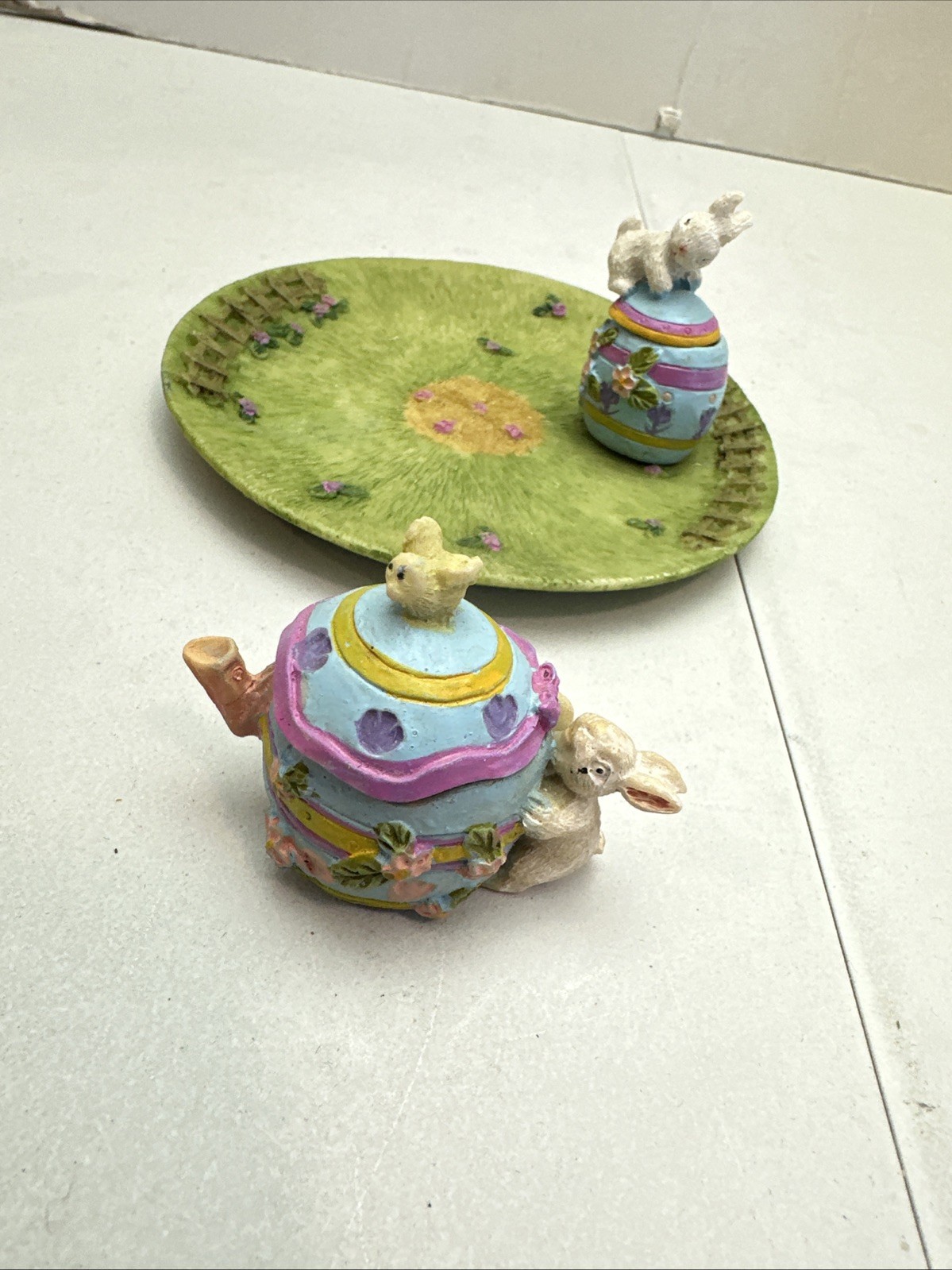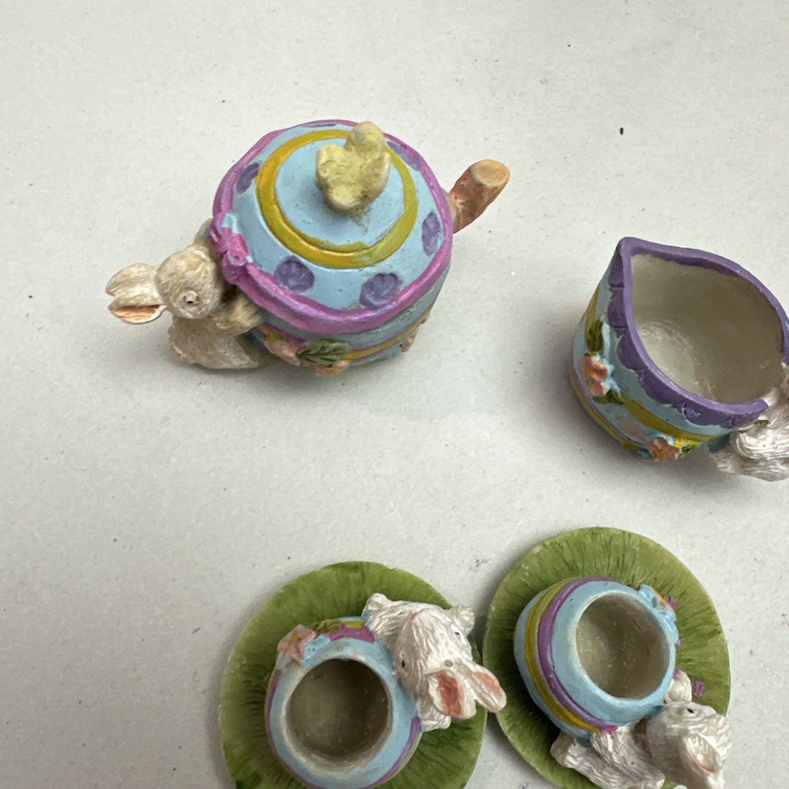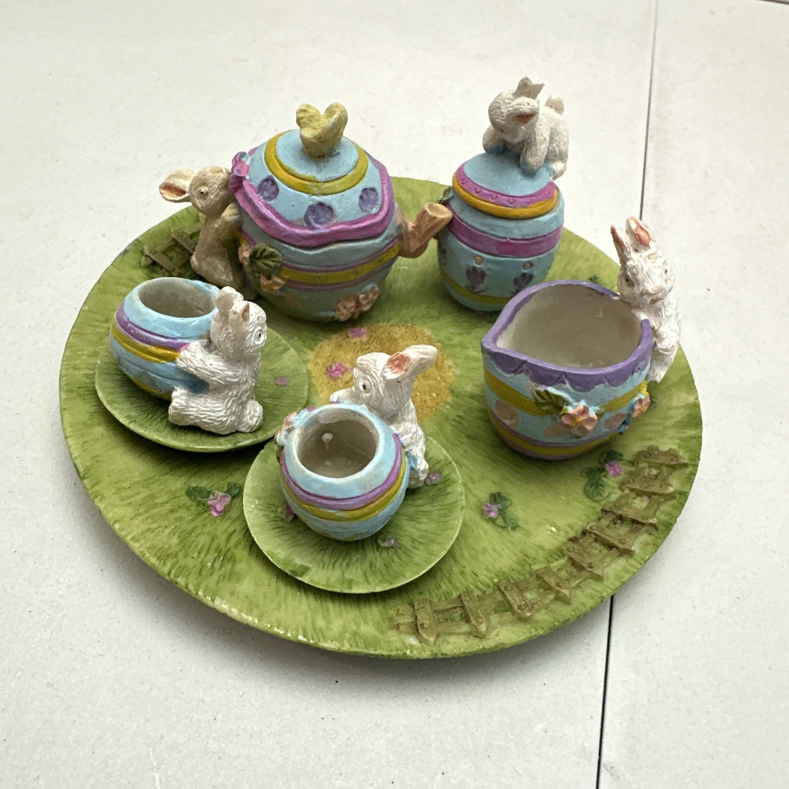 Vintage Miniature Tea Set Easter Garden Bunnies Party -8 Pc Set