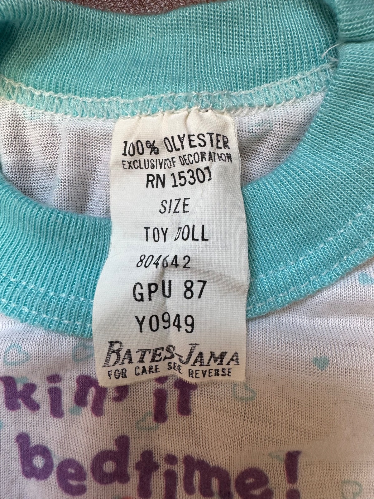 Vintage 80s Popples Doll Nightgown Dress Bates-Jama Bookin' it 'til Bedtime