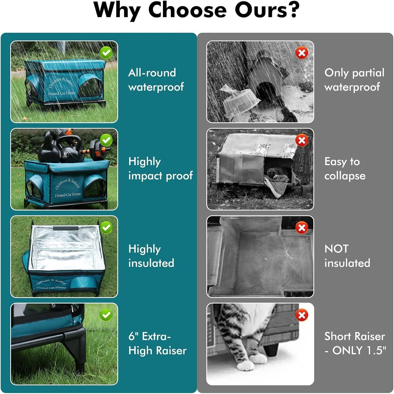 Heated Cat House Elevated Insulated Outdoor Feral Cat Shelter w/Cat Heating Pad