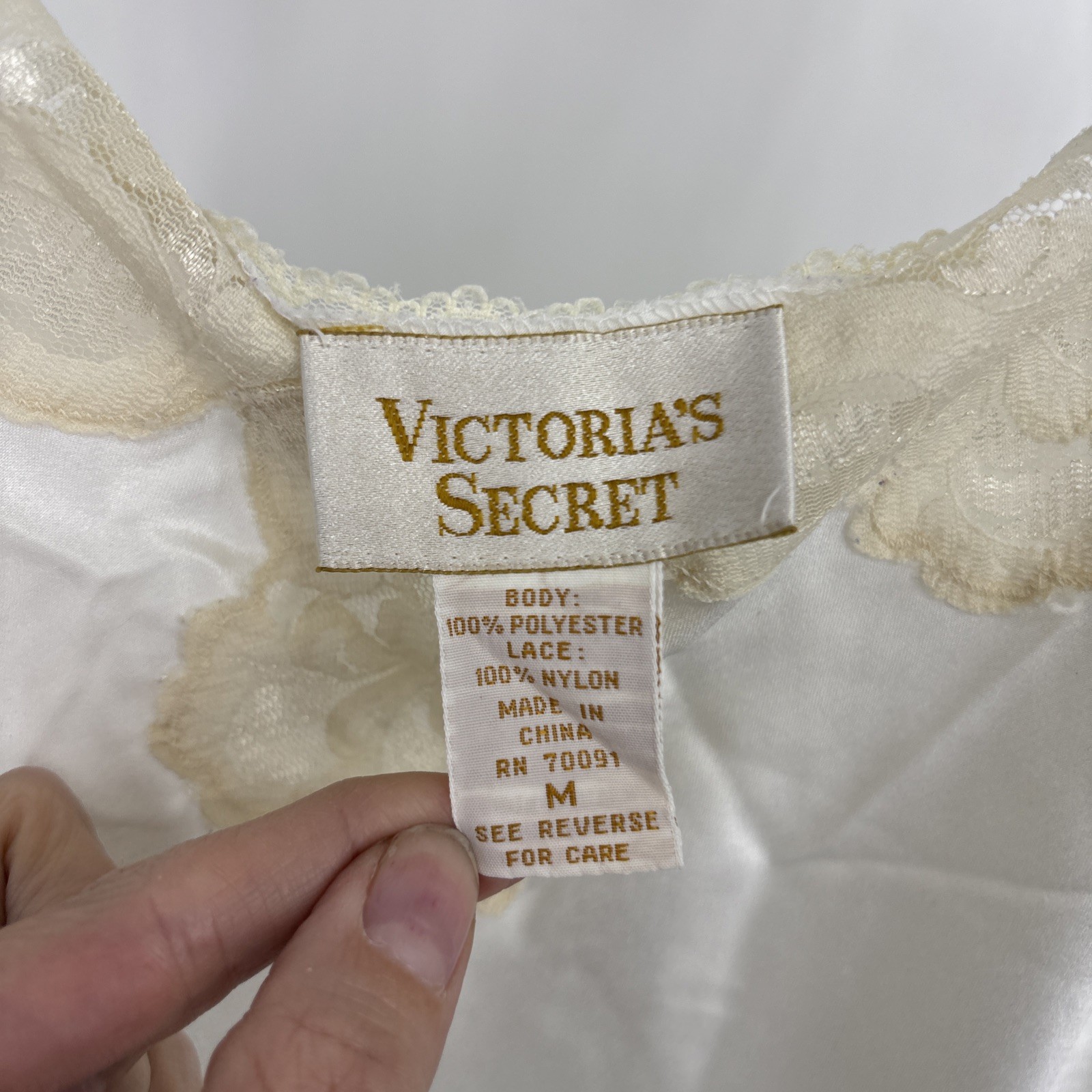 Vintage Victoria s Secret Gold Label Ivory Slip Dress Size M Lace Braided Straps