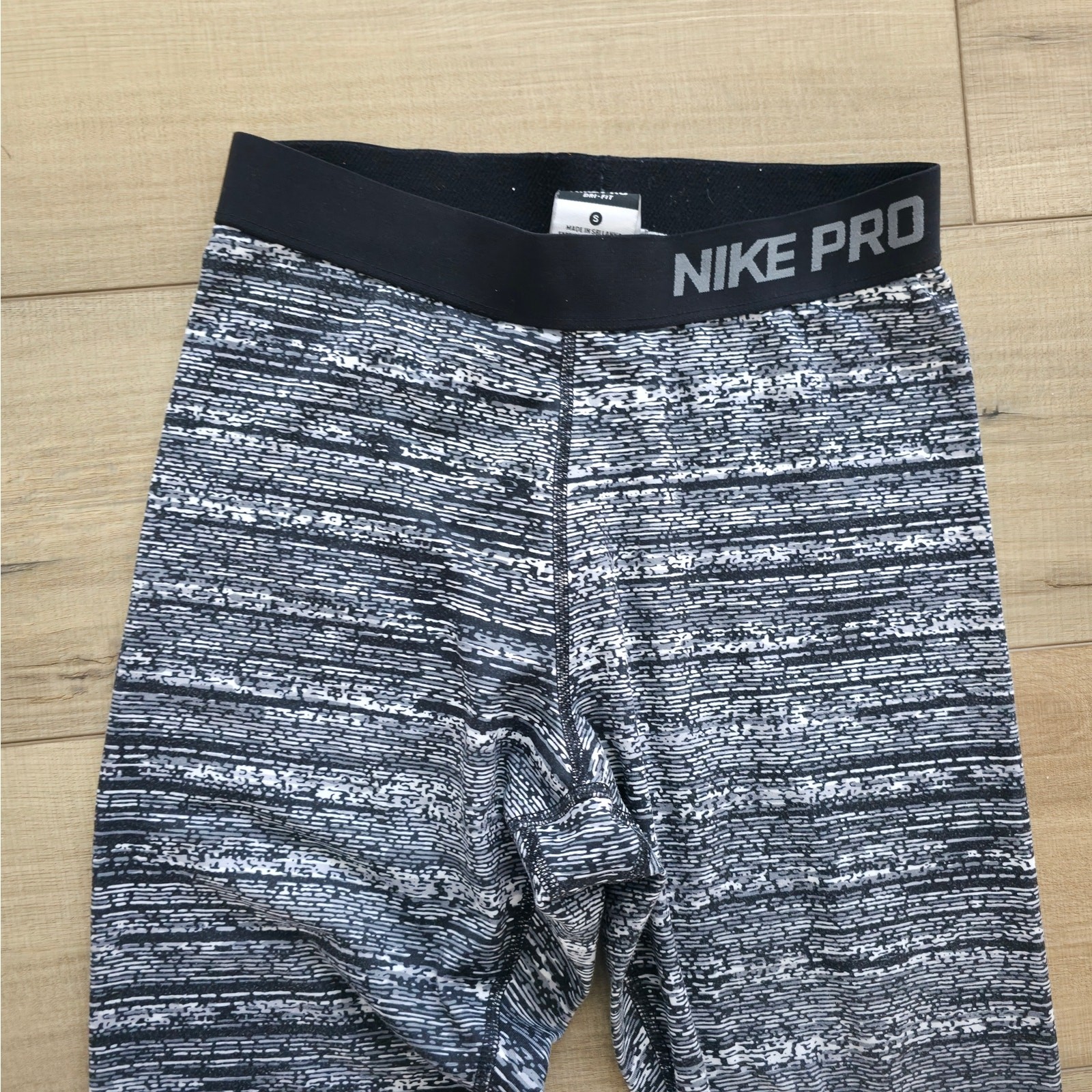 как выглядит Nike Pro Dri Fit Static Black and White Midrise Running Tight Women Sz S фото