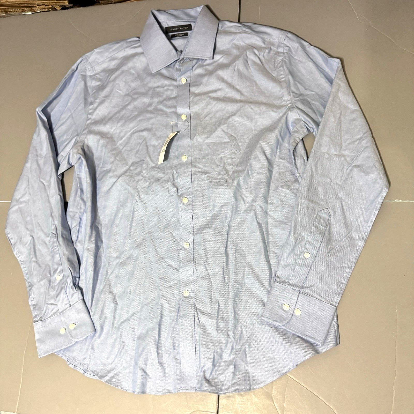 Tommy Hilfiger Shirt 16 16.5 34 35 Long Sleeve Dress Shirt Blue Slim Fit Dutch