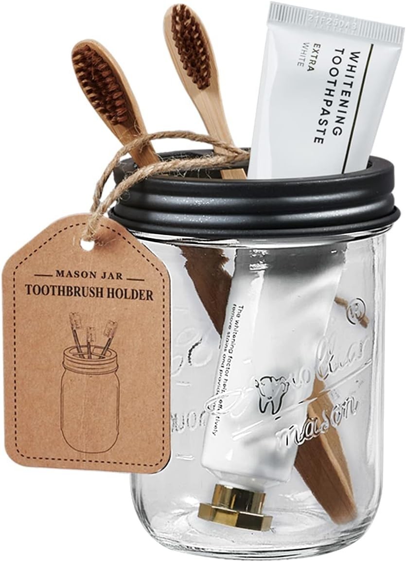 Rustic Mason Jar Bathroom Organizer Set - 4-Piece Farmhouse Decor Collection