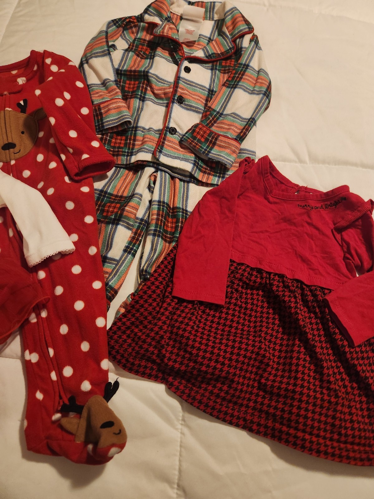 как выглядит Lot Of Baby Girl Christmas Outfits PJs From 6 Months Up To 12 Months 9 Outfits фото