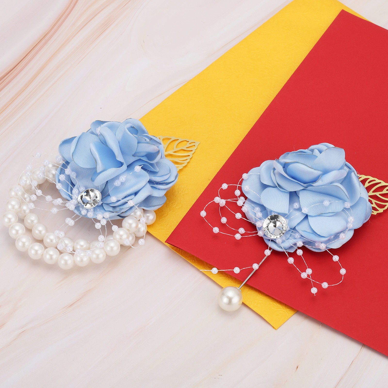 Rose Bridesmaid Wrist Flower Corsage Artificial Bride Wrist Corsage Light Blue