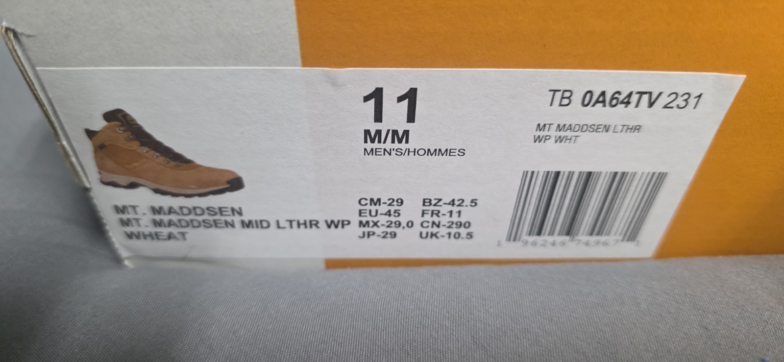 как выглядит Timberland Mt. Maddsen Mid WP Hiking Boots Wheat Nubuck Men SZ 11 NWB Defects фото