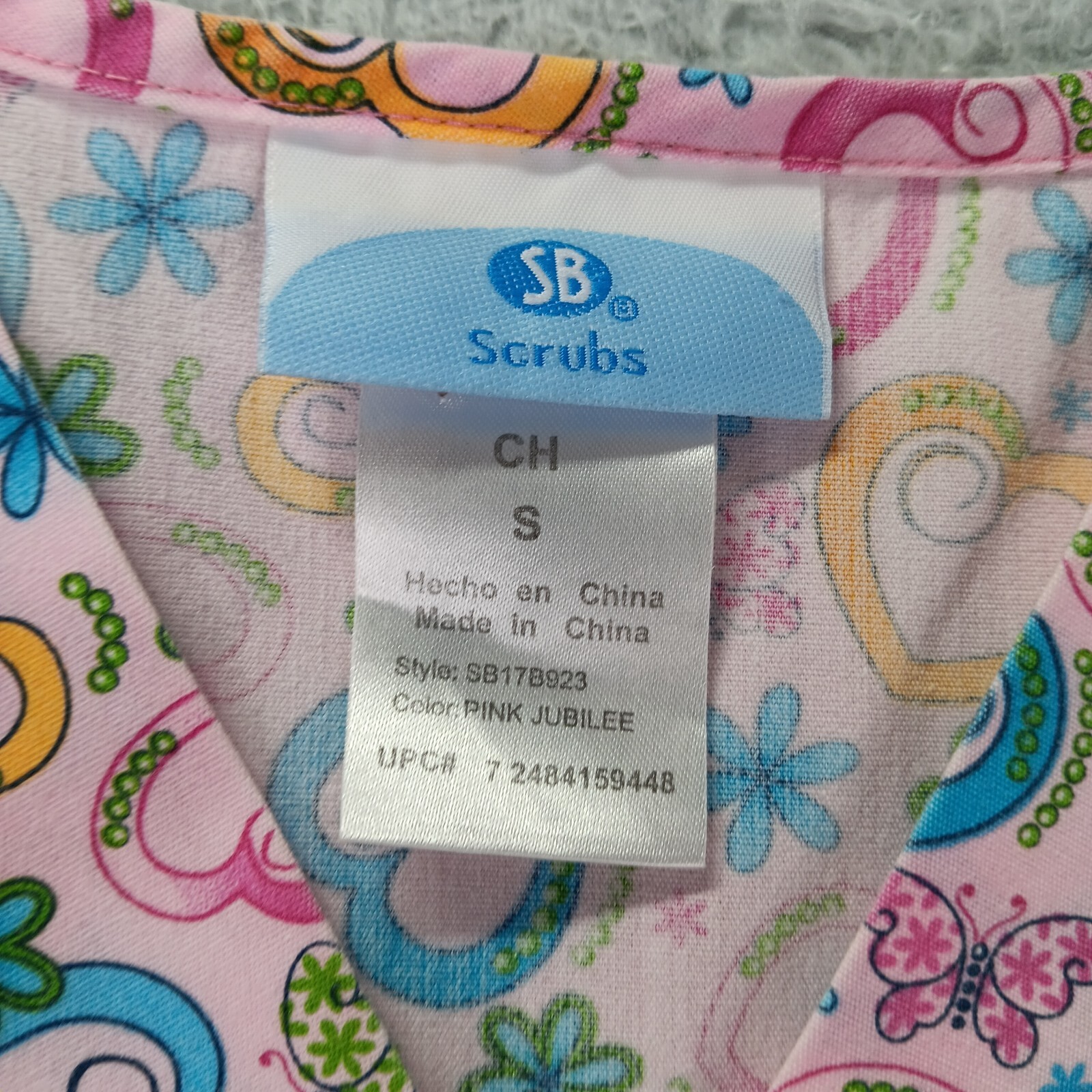 SB Scrubs Scrub Top Womens Small Pink Hearts V-Neck Medical Floral SB17B923
