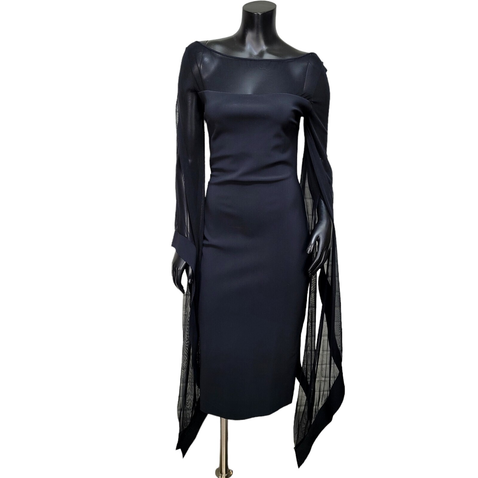 Chiara Boni La Petite Robes 8 Kacey illusion Gown Bateau Neck Cape Sleeve Midi