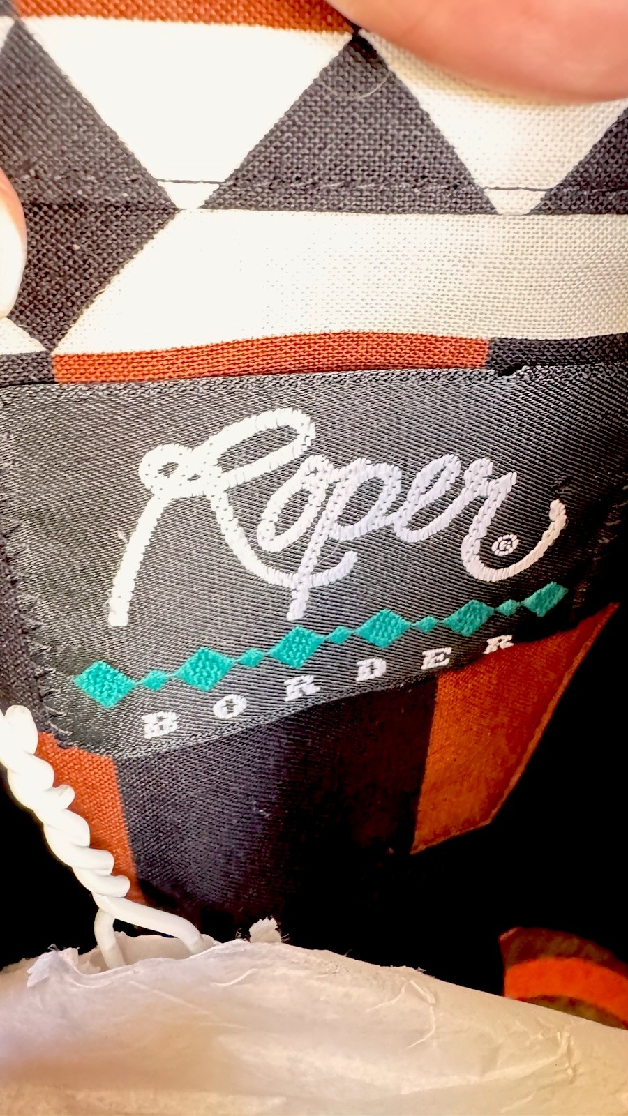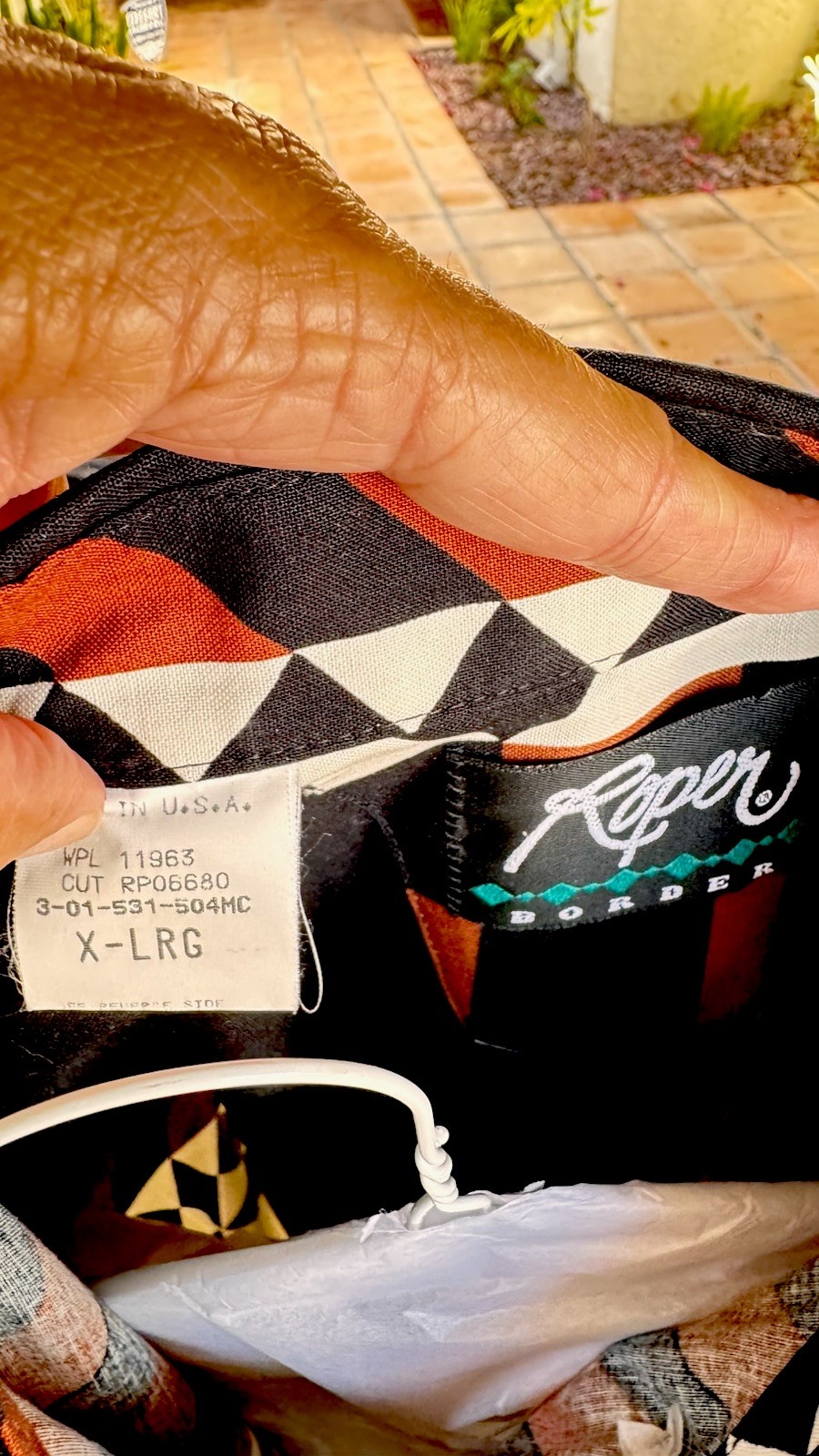VTG Roper Western Aztec/ Native American geometric pattern Size XL Black Rust