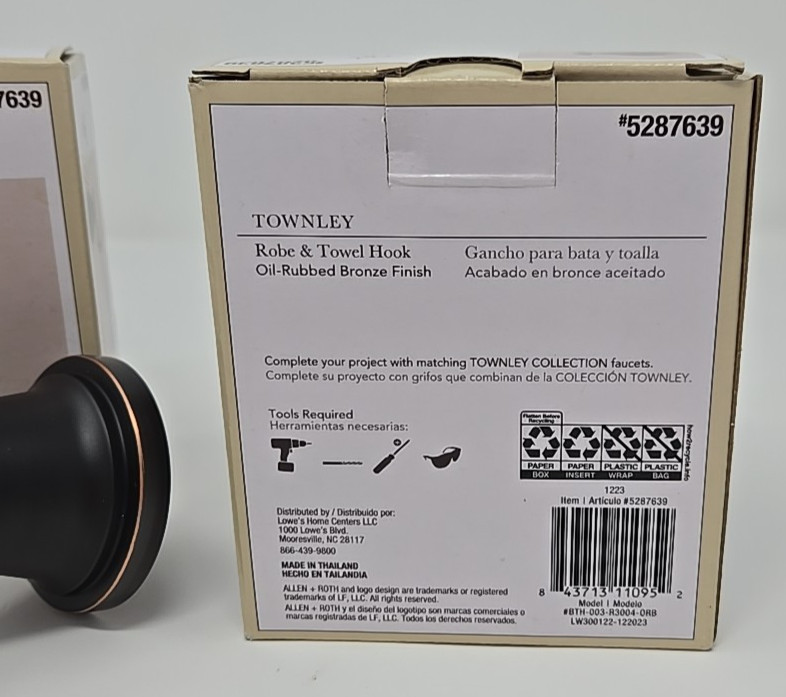 как выглядит allen roth Townley Oil Rubbed Bronze Double -Hook Wall-mount Towel Hook фото