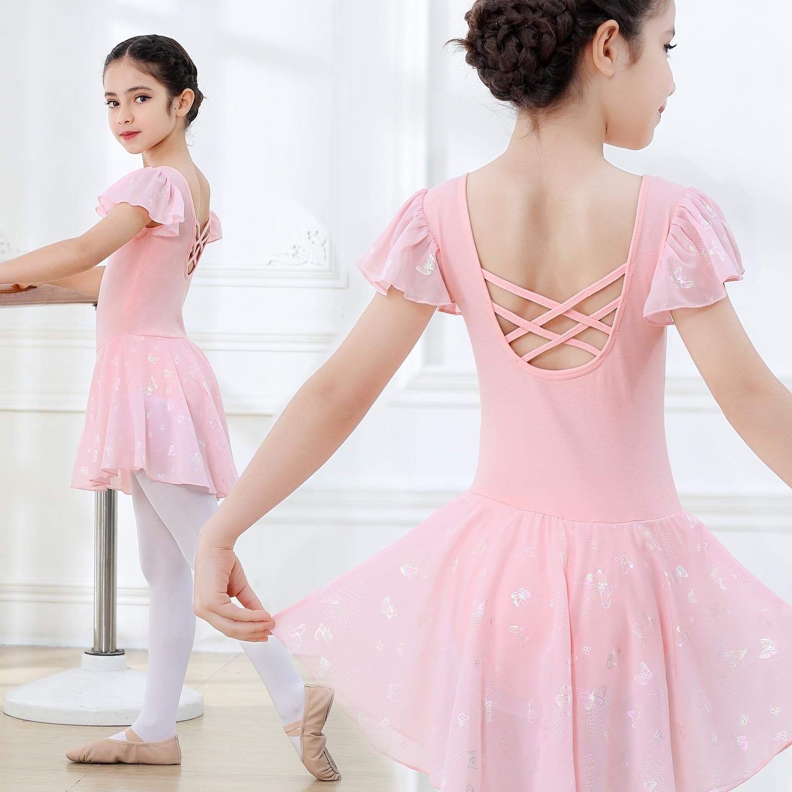DIPUG Ballet Leotards for Girls with Skirt Shiny Toddler Dance 2-4T, Pink